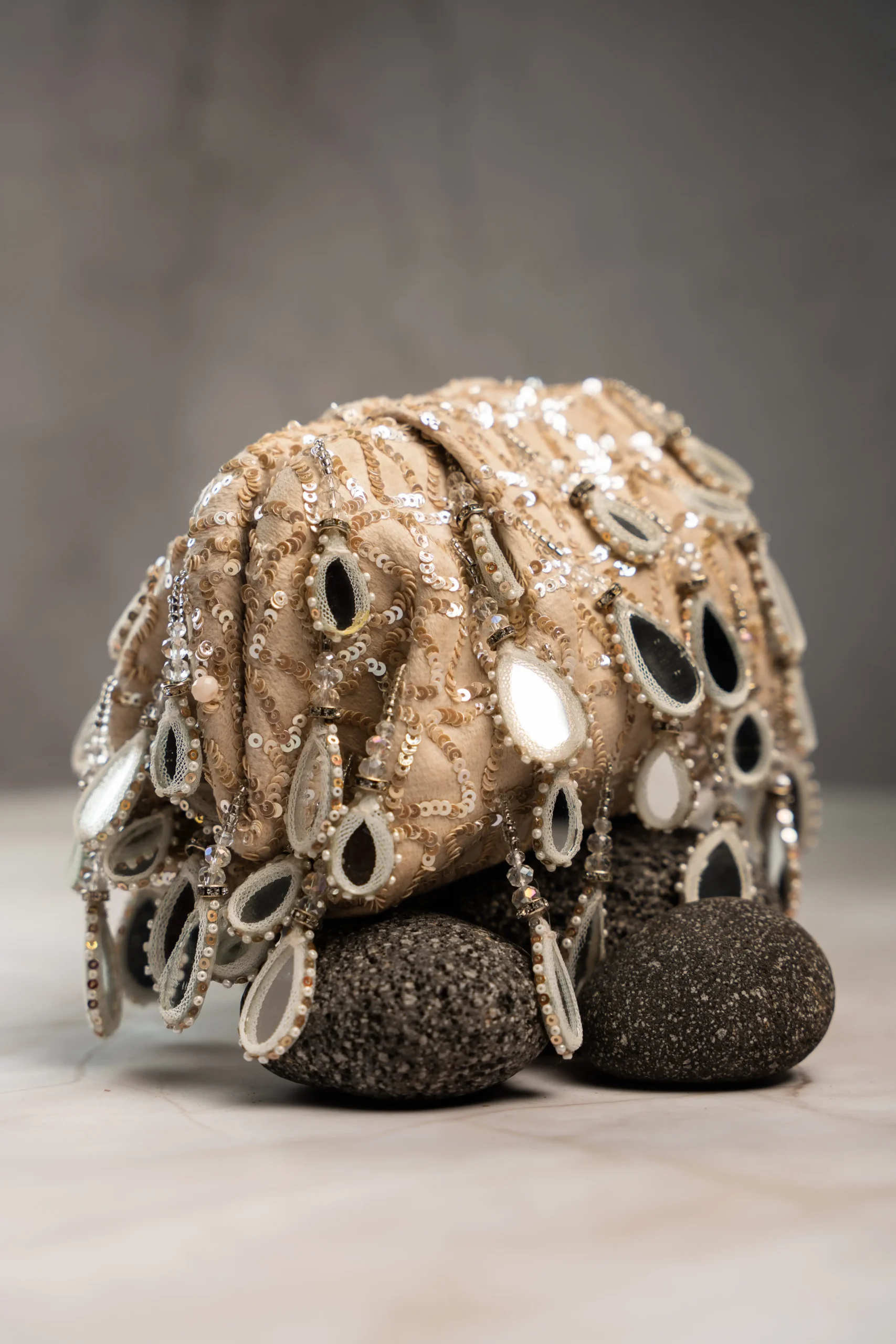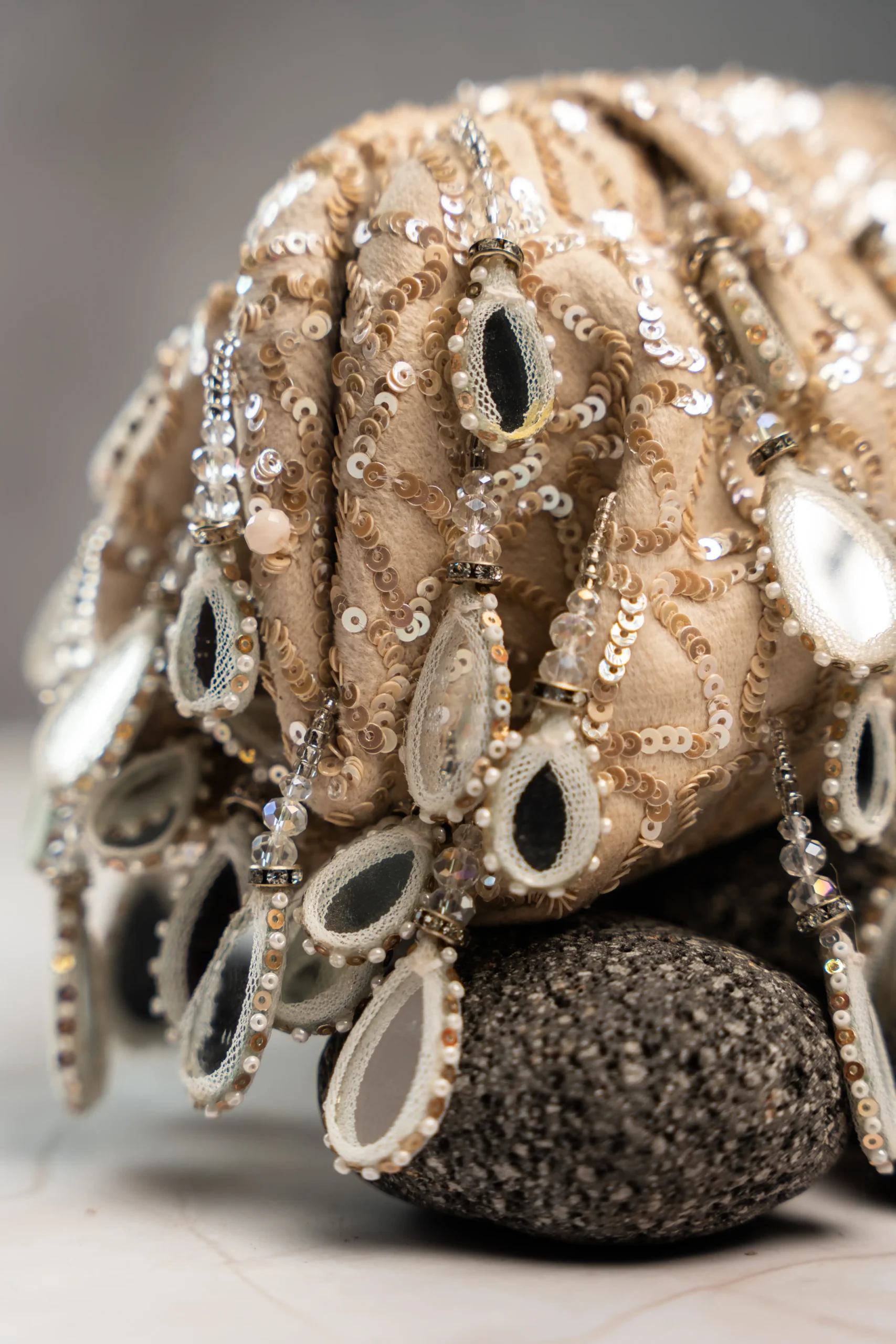 Style this elegant clutch with pastel lehengas, embellished sarees, or contemporary Indo-western outfits. The mirror and sequin work reflects light beautifully, while the white and silver tones pair effortlessly with pearl or diamond jewellery and metallic heels for weddings and festive celebrations.