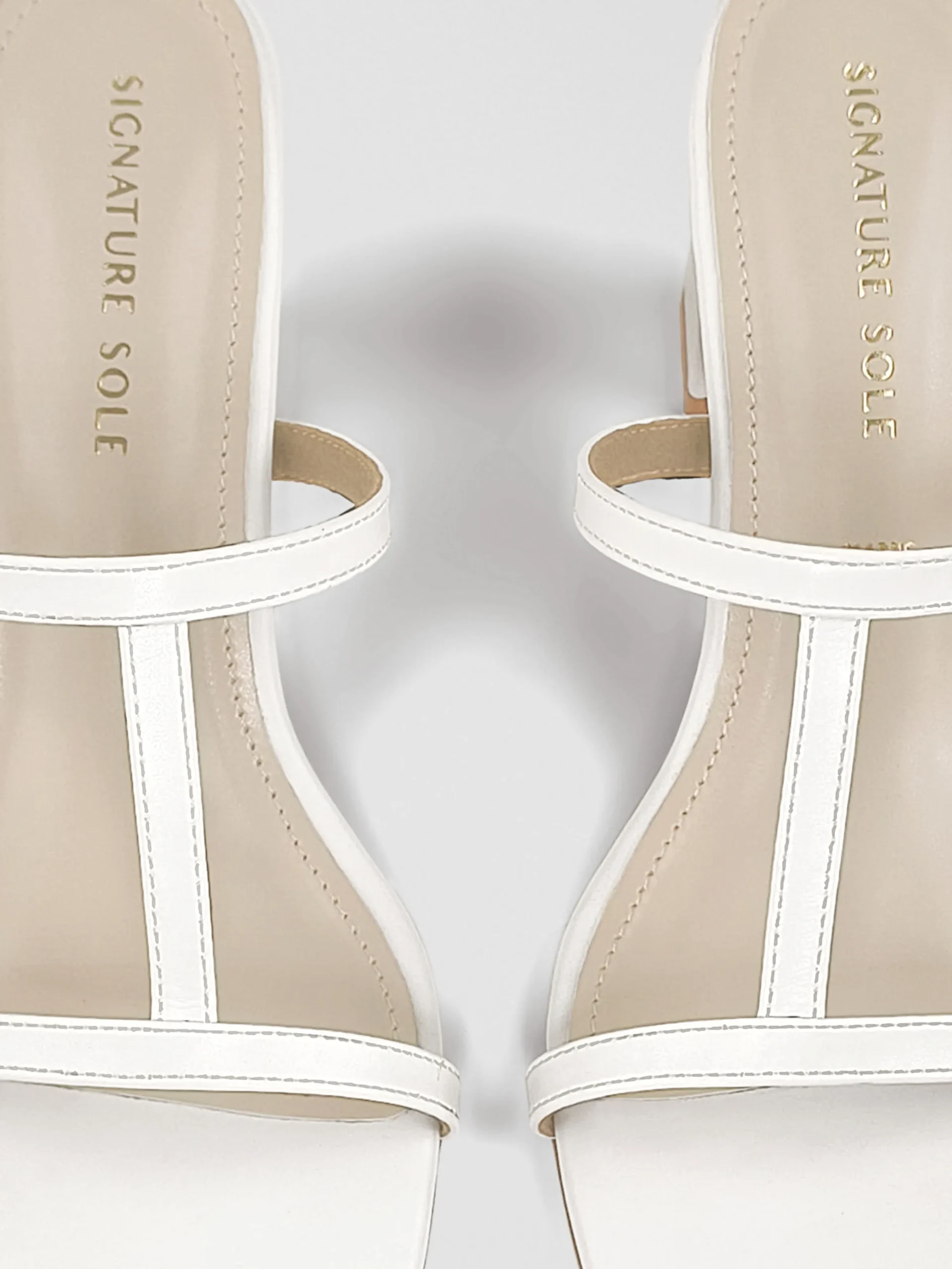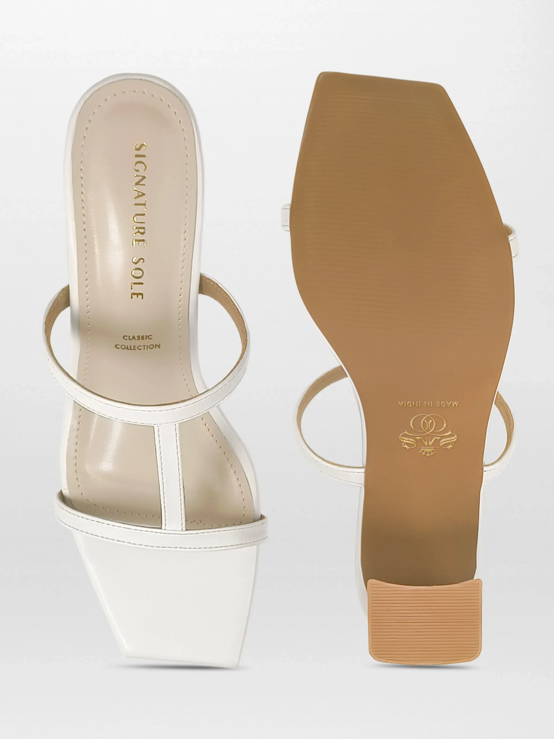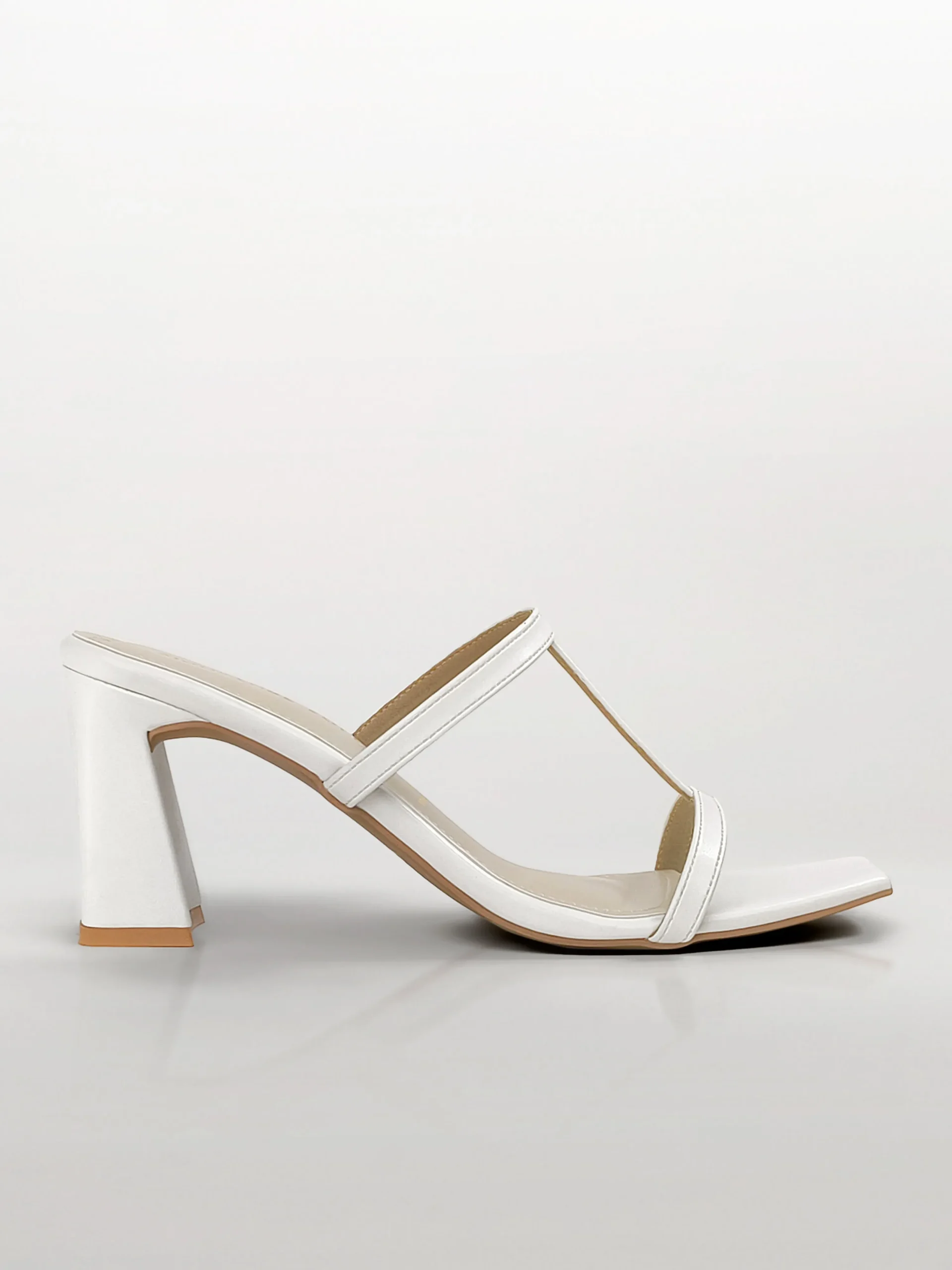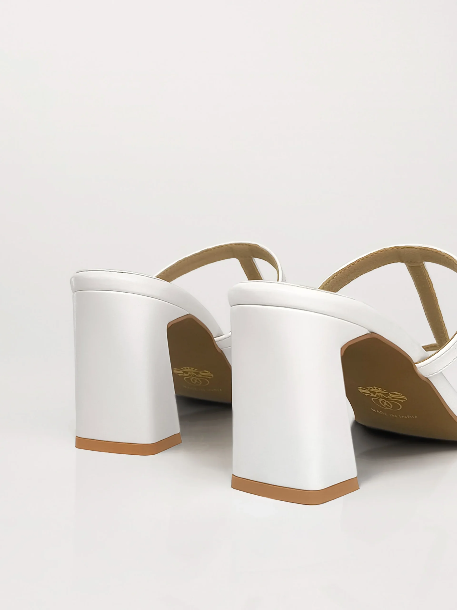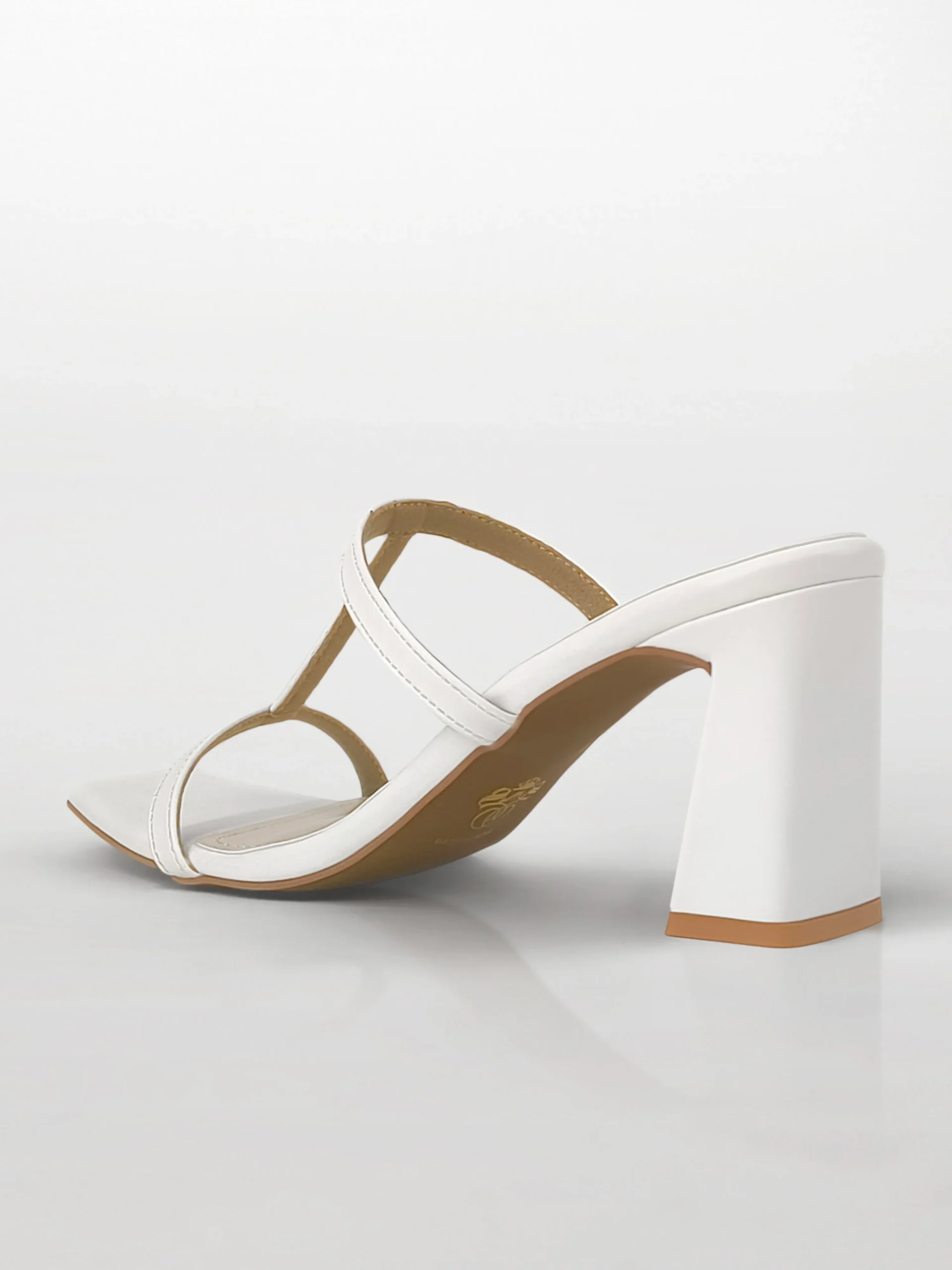 White T-Strap Block Heel Mule – Block Heels Women & Mules for Women