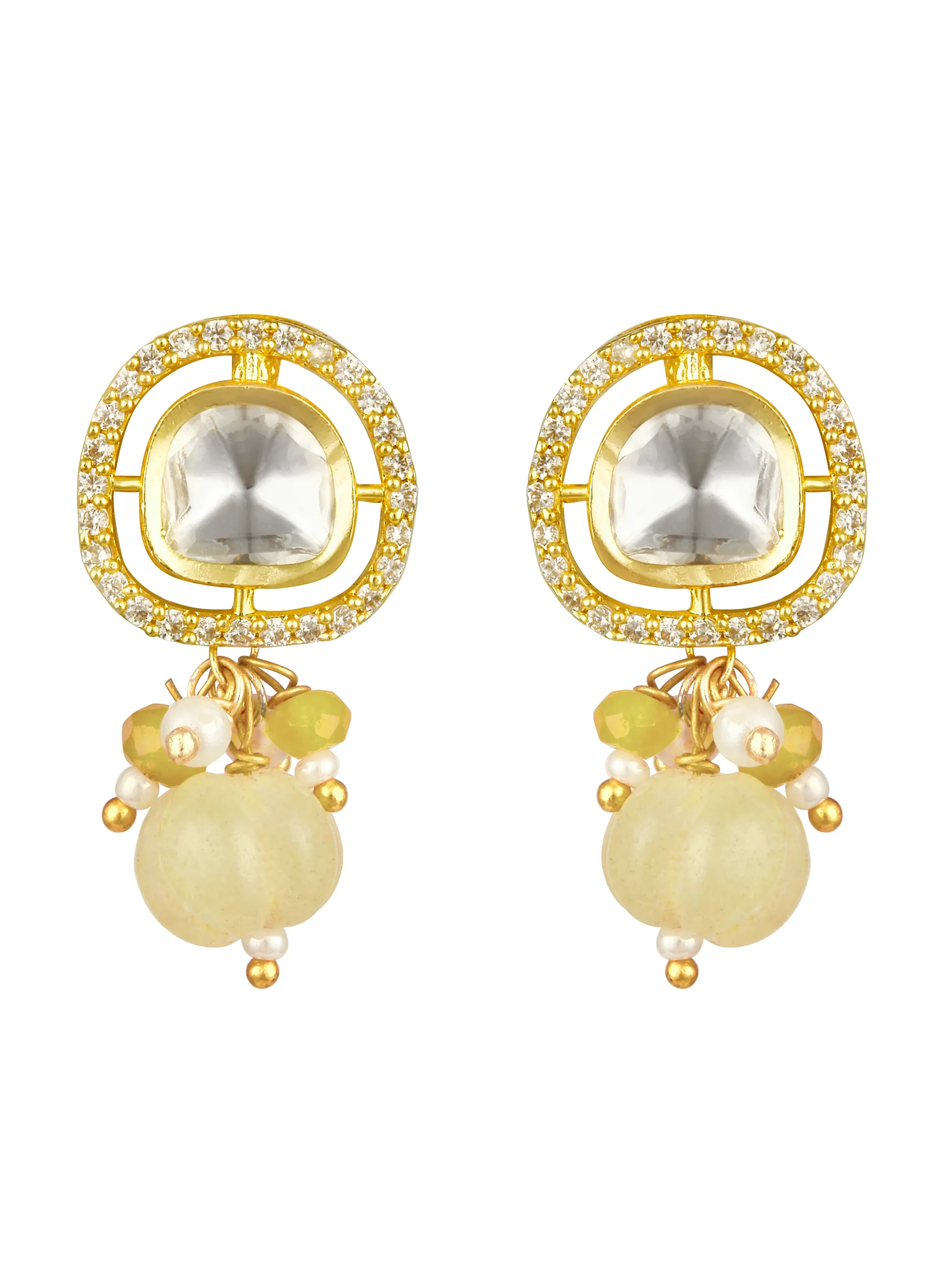 Micron Gold Polished Brass ,mosanite kundan polki and pale yellow carved onyx tumbles, zirconia and Agates. Natural stone have little variations in shape, shade and can differ from the actual image on website