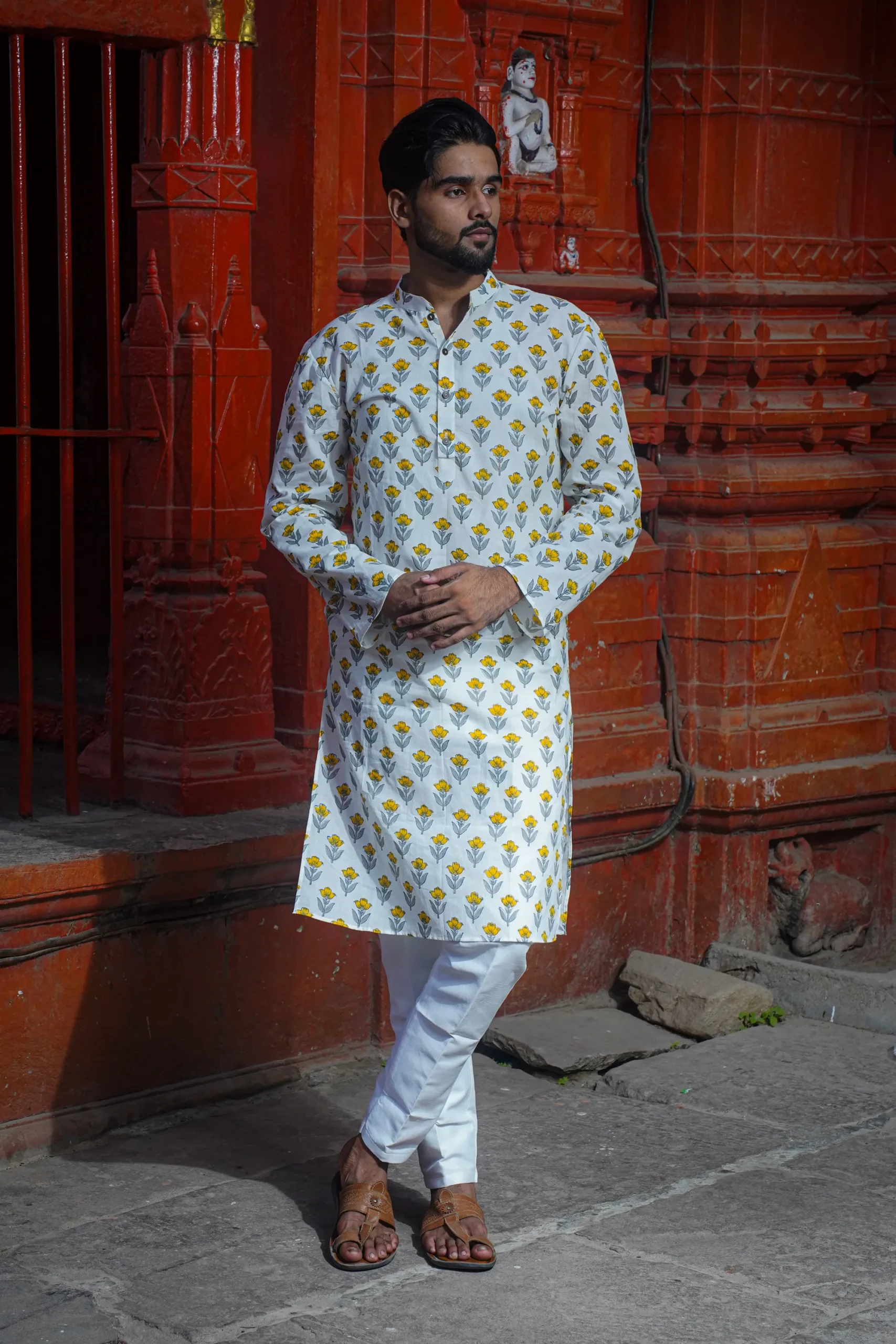 Misty Vision Floral Printed Cotton Kurta Set with Mandarin Collar & Side Pockets