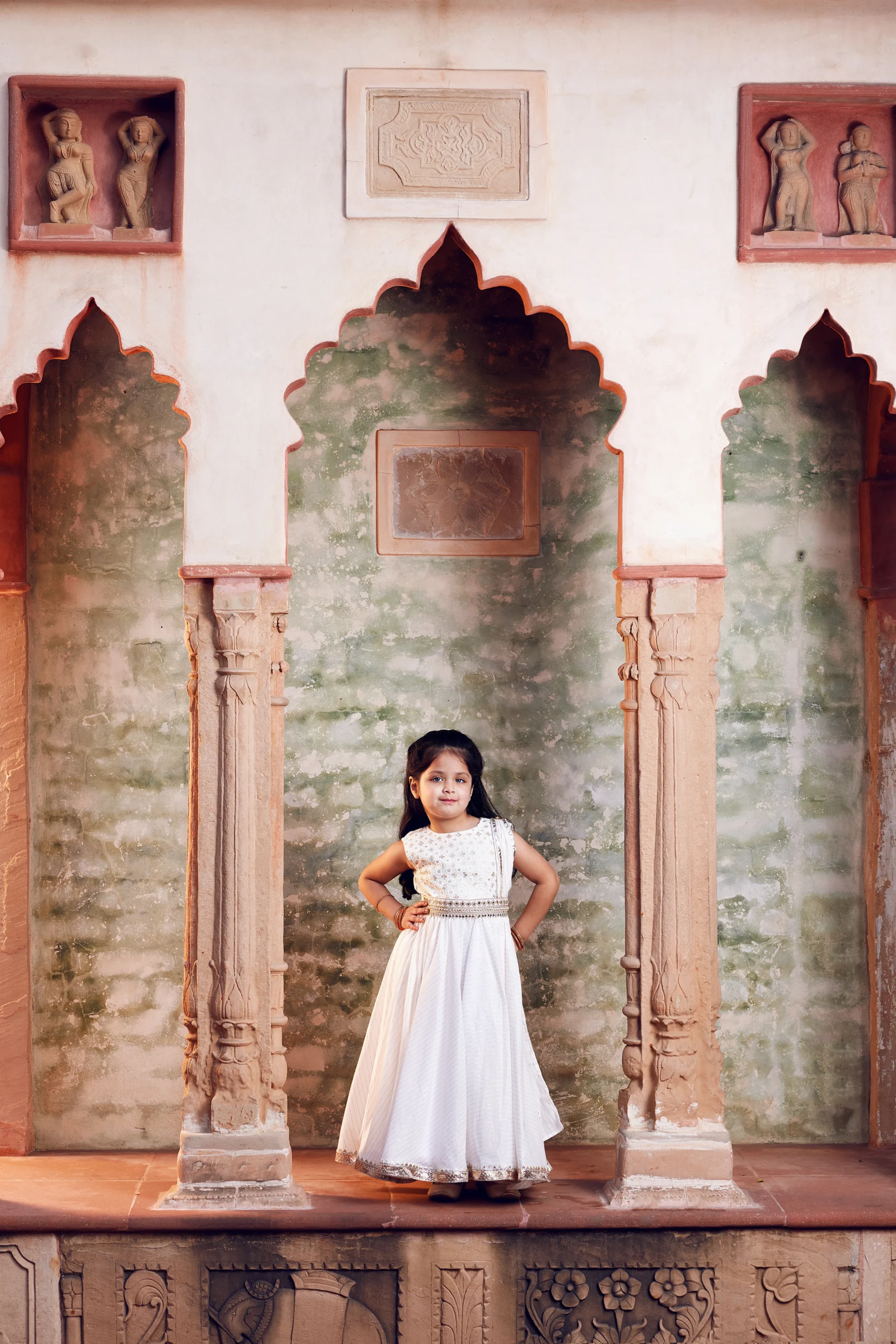 Red Chanderi Mirror Work Choga Set with Ikat Salwar for Girls