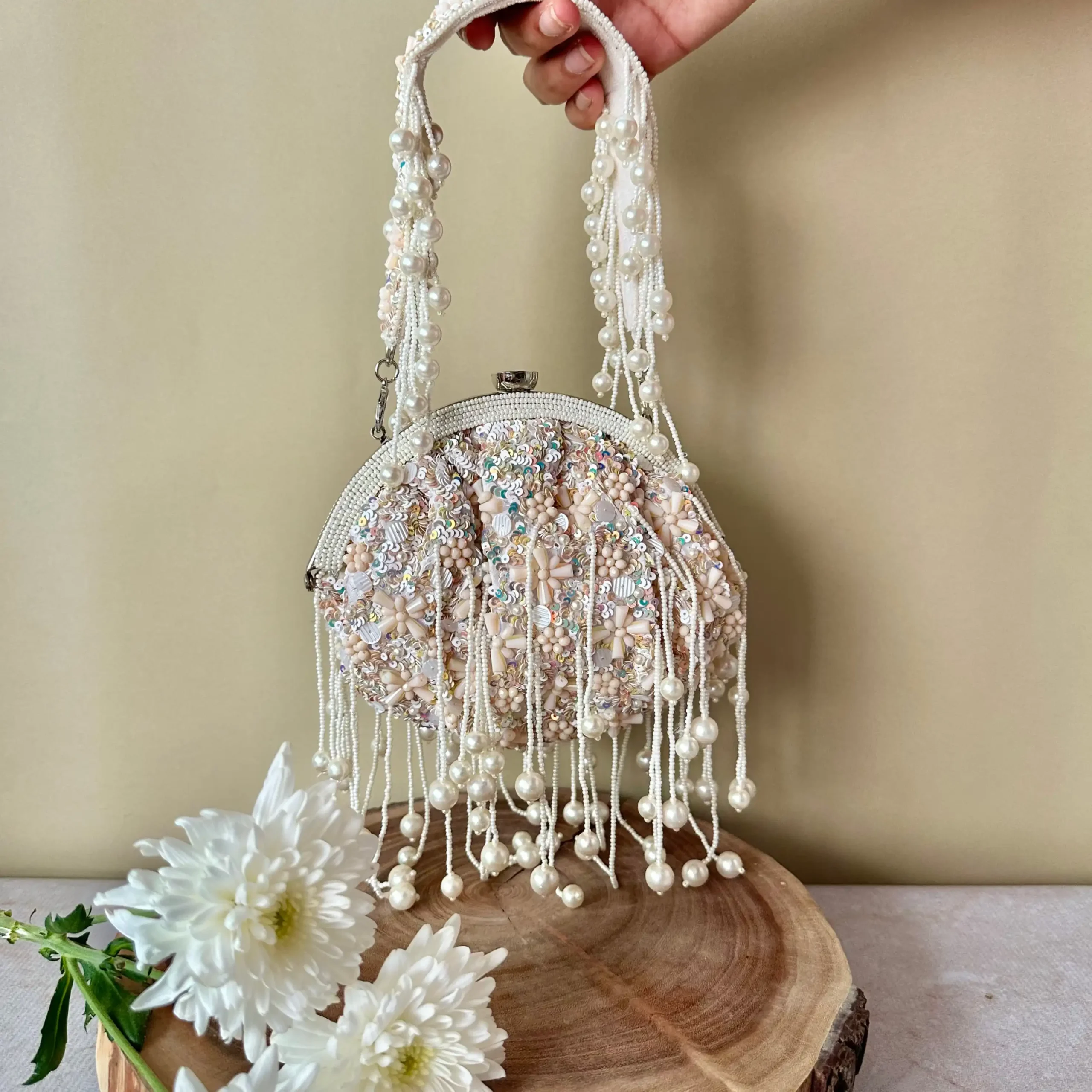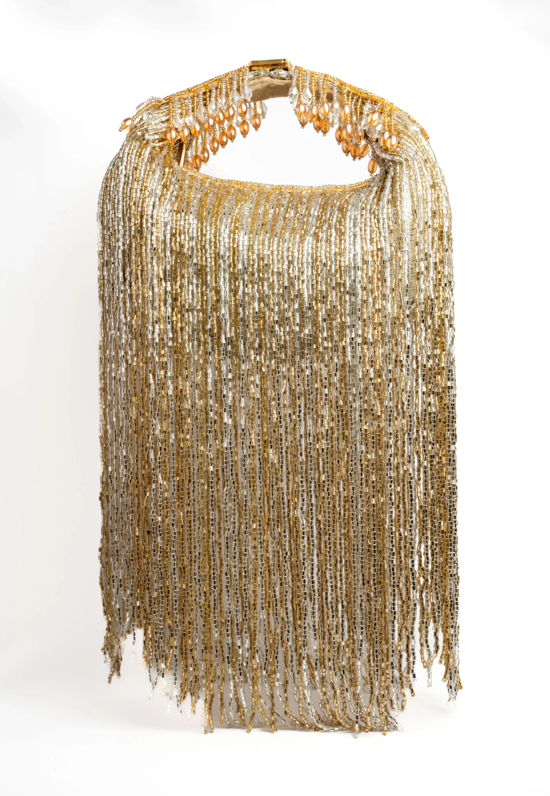 Two Toned Tasseled Potli with Beaded Tassels and Contemporary Glam Style