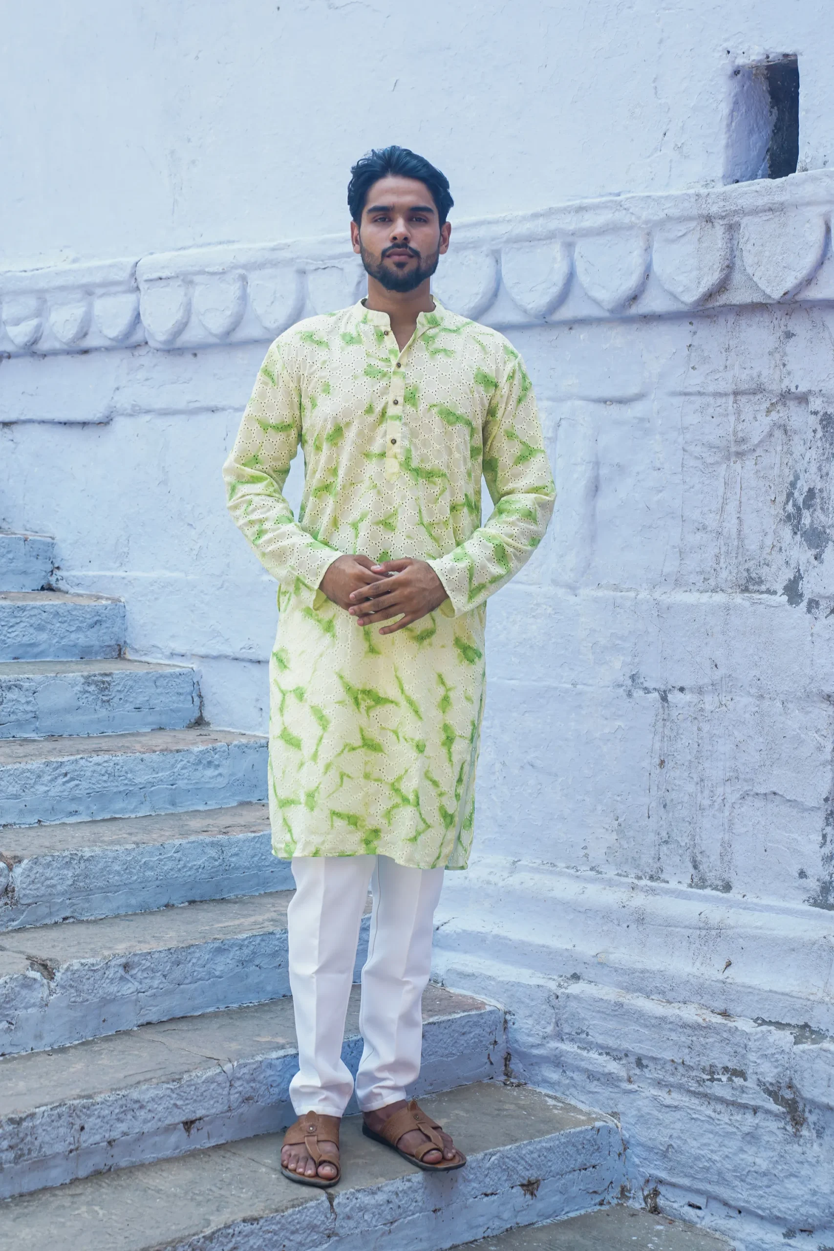 Magenta Kota Doria Leheriya Print Anarkali Set