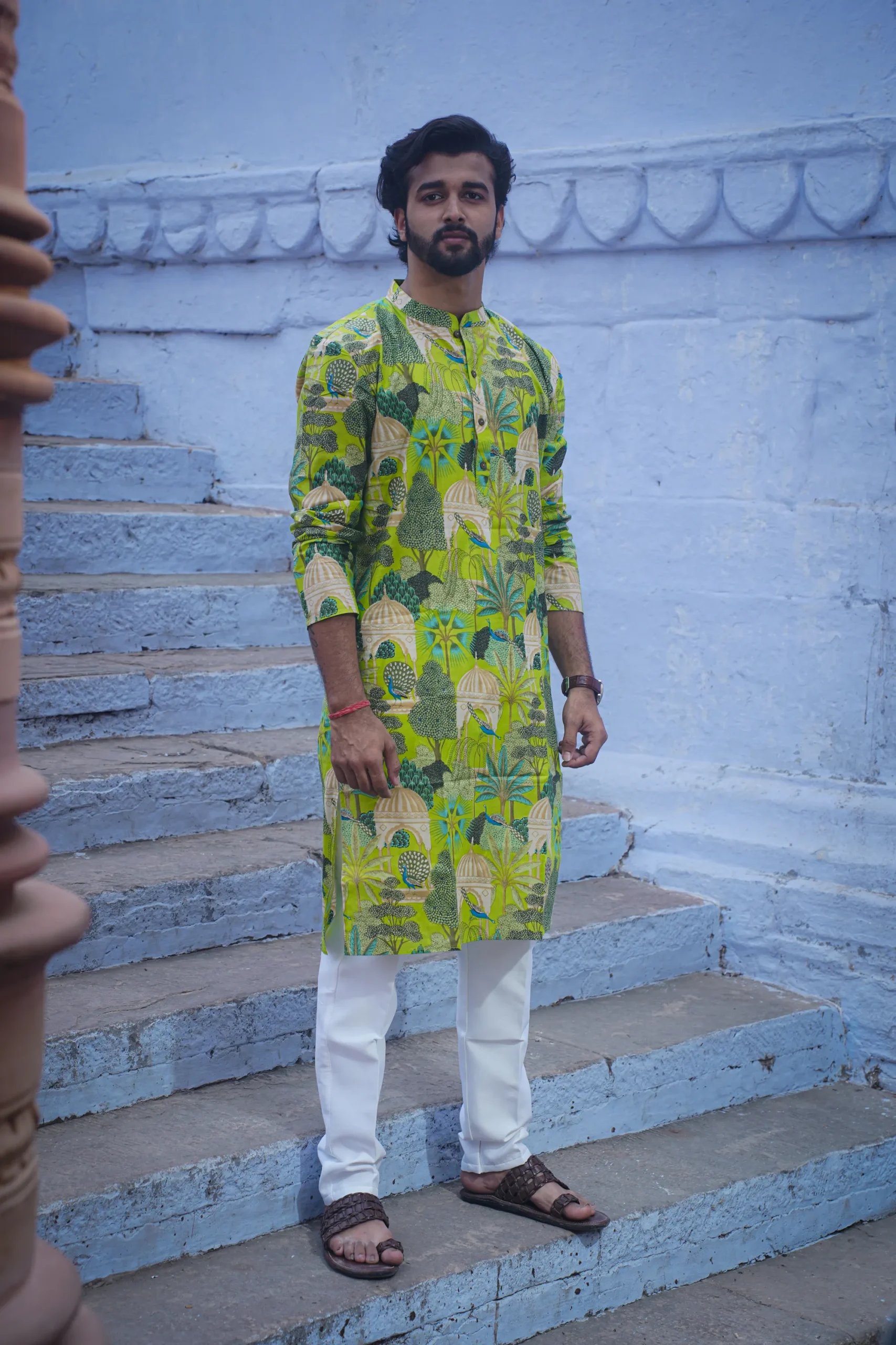 Nature-Inspired Hand-Painted with Bead Embroidery & Striped Hem Detailing Kurta Set