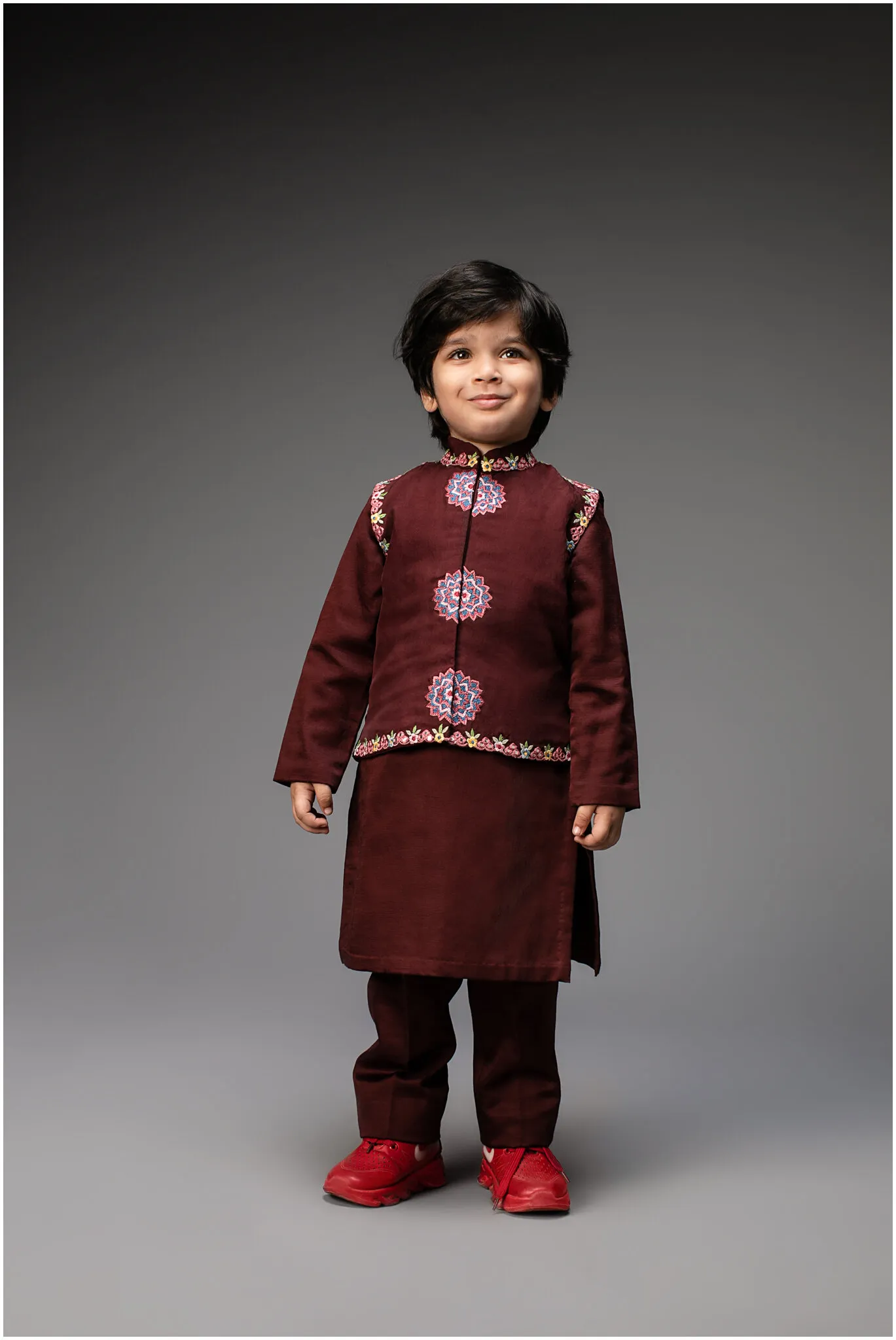 Deep Wine Embroidered Nehru Jacket Set with Kurta and Pants