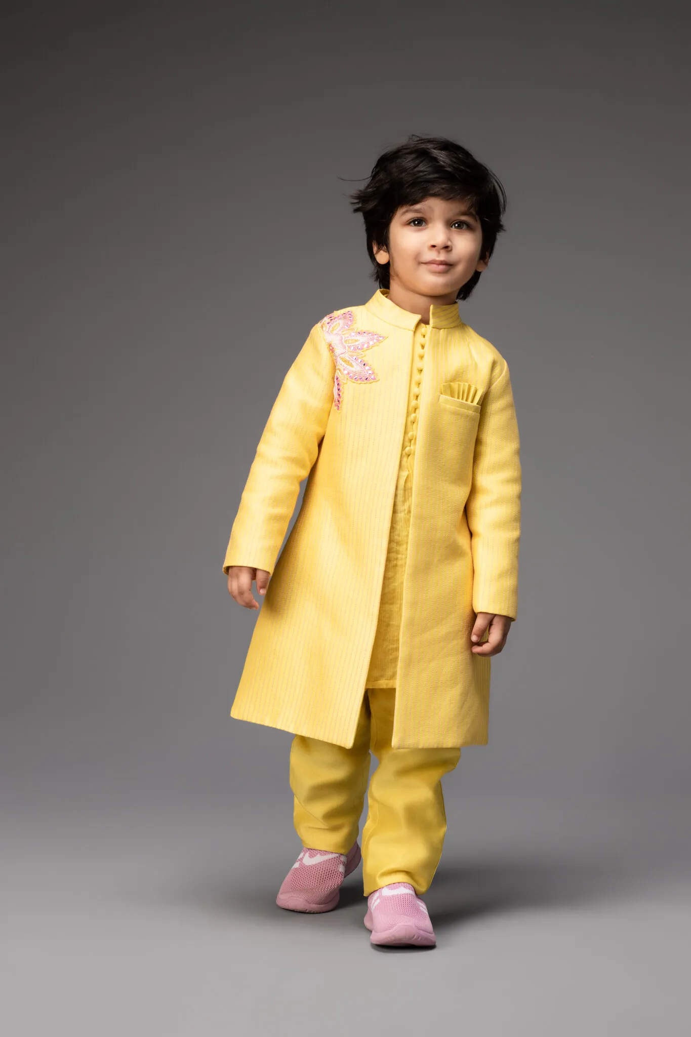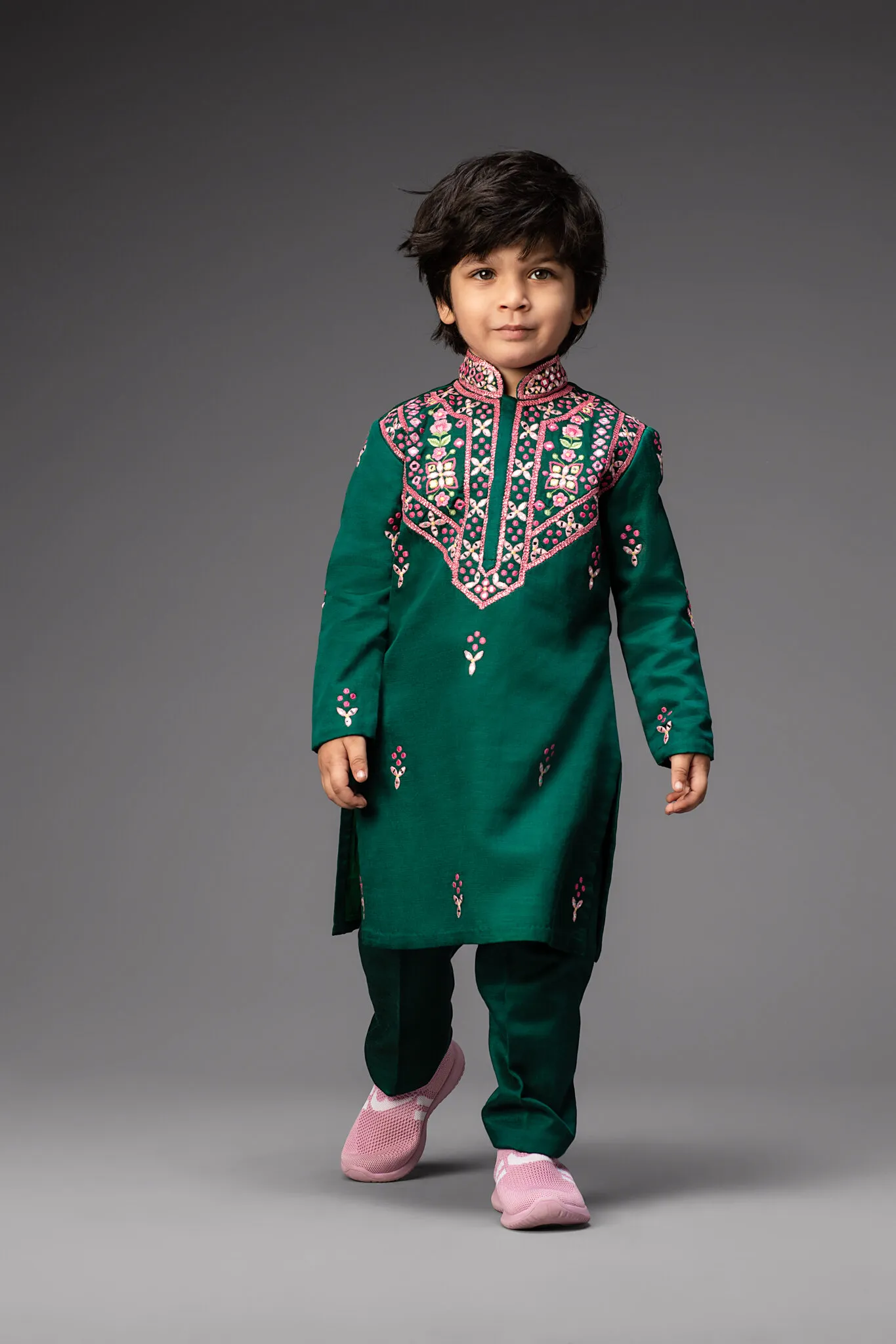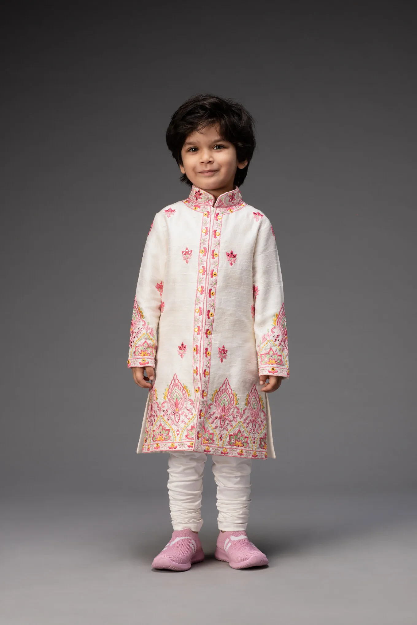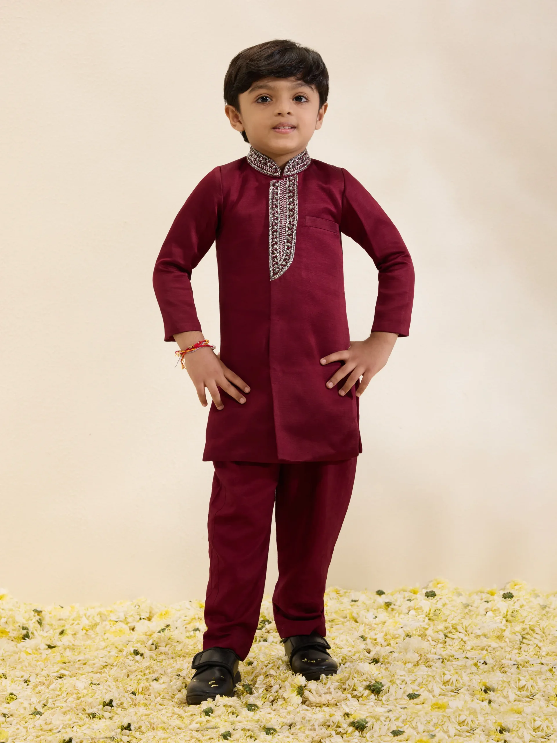 Maroon Embroidered Placket Sherwani Set with Narrow Pants
