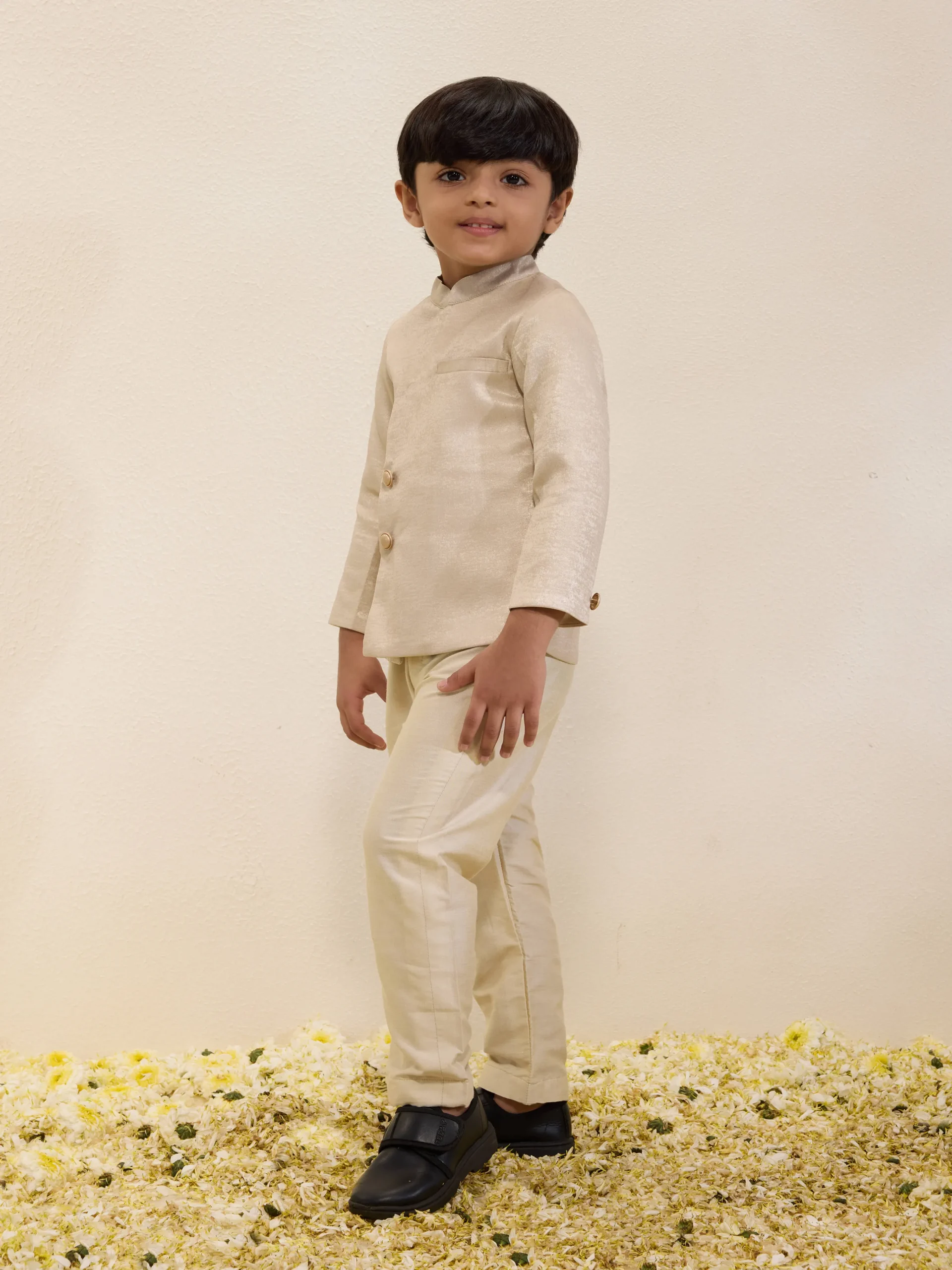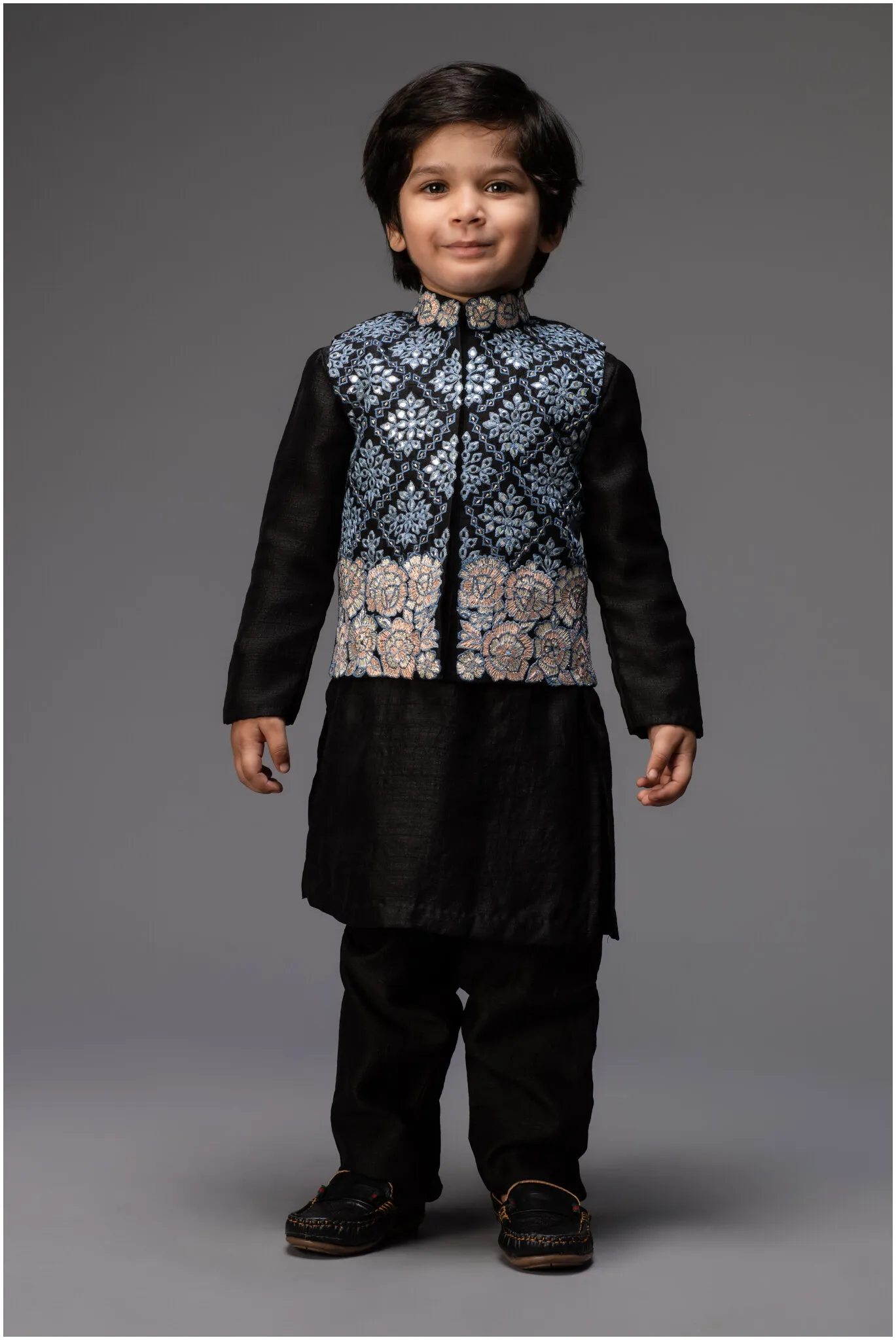 Charcoal Black Embroidered Nehru Jacket with Kurta and Pants