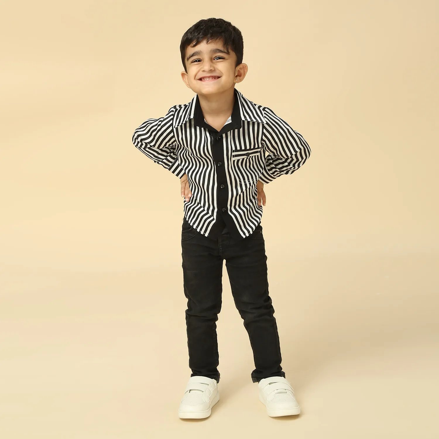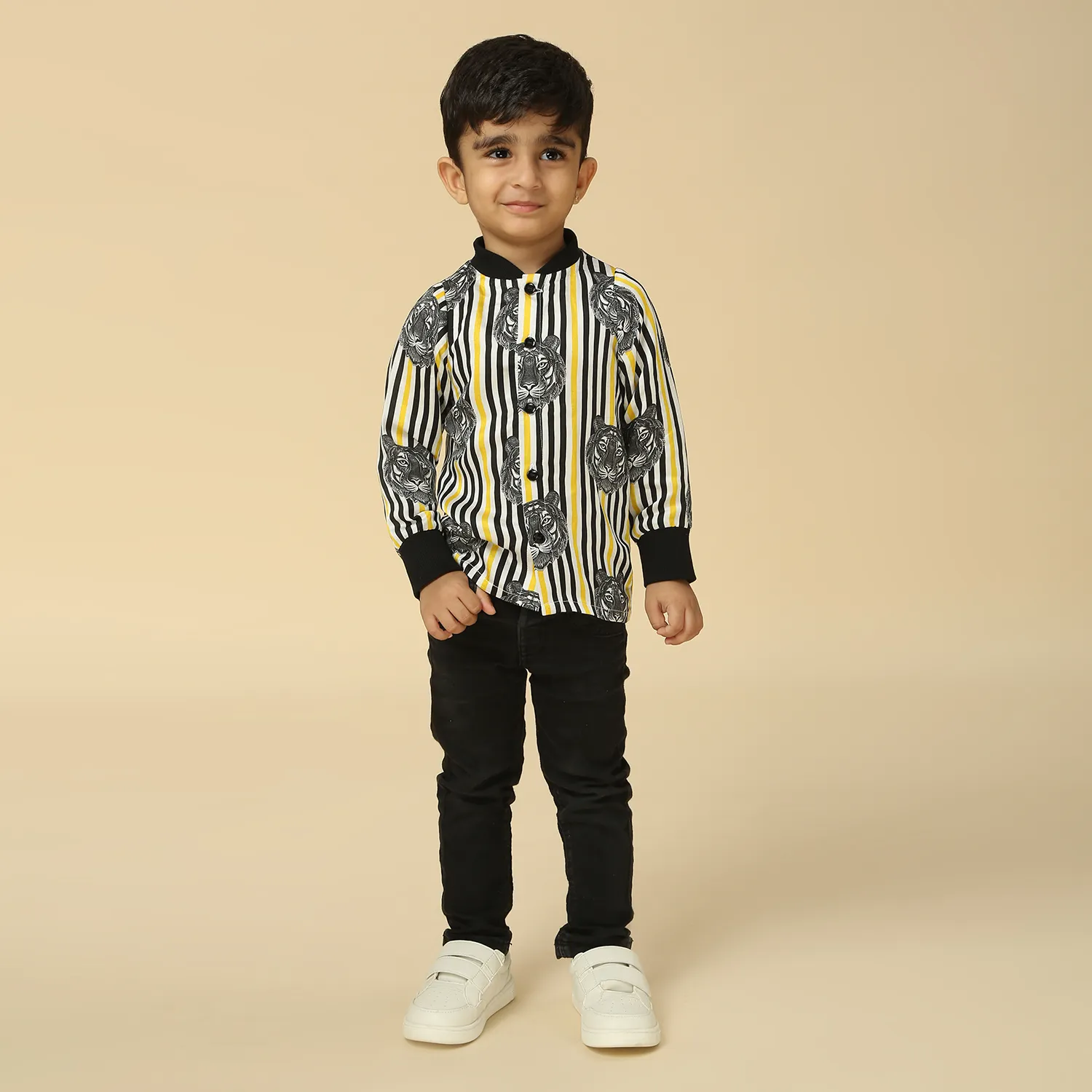 Black & White Fish Print Short Kurta with Collar and Placket Detail