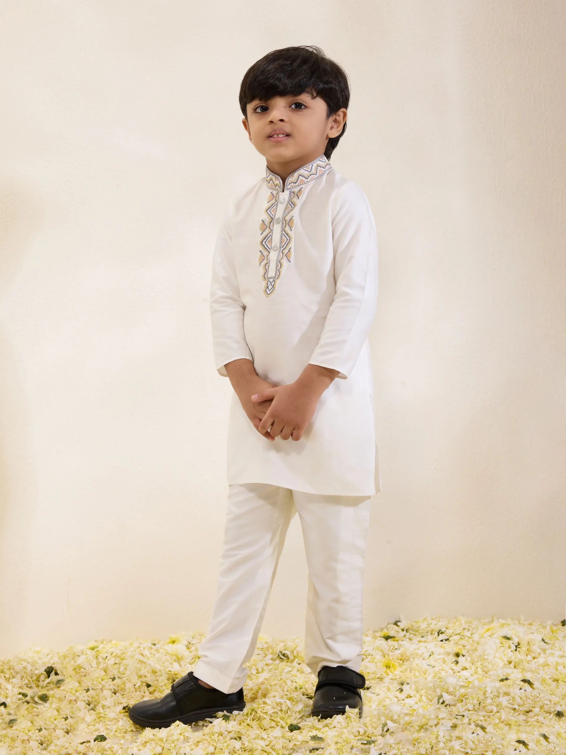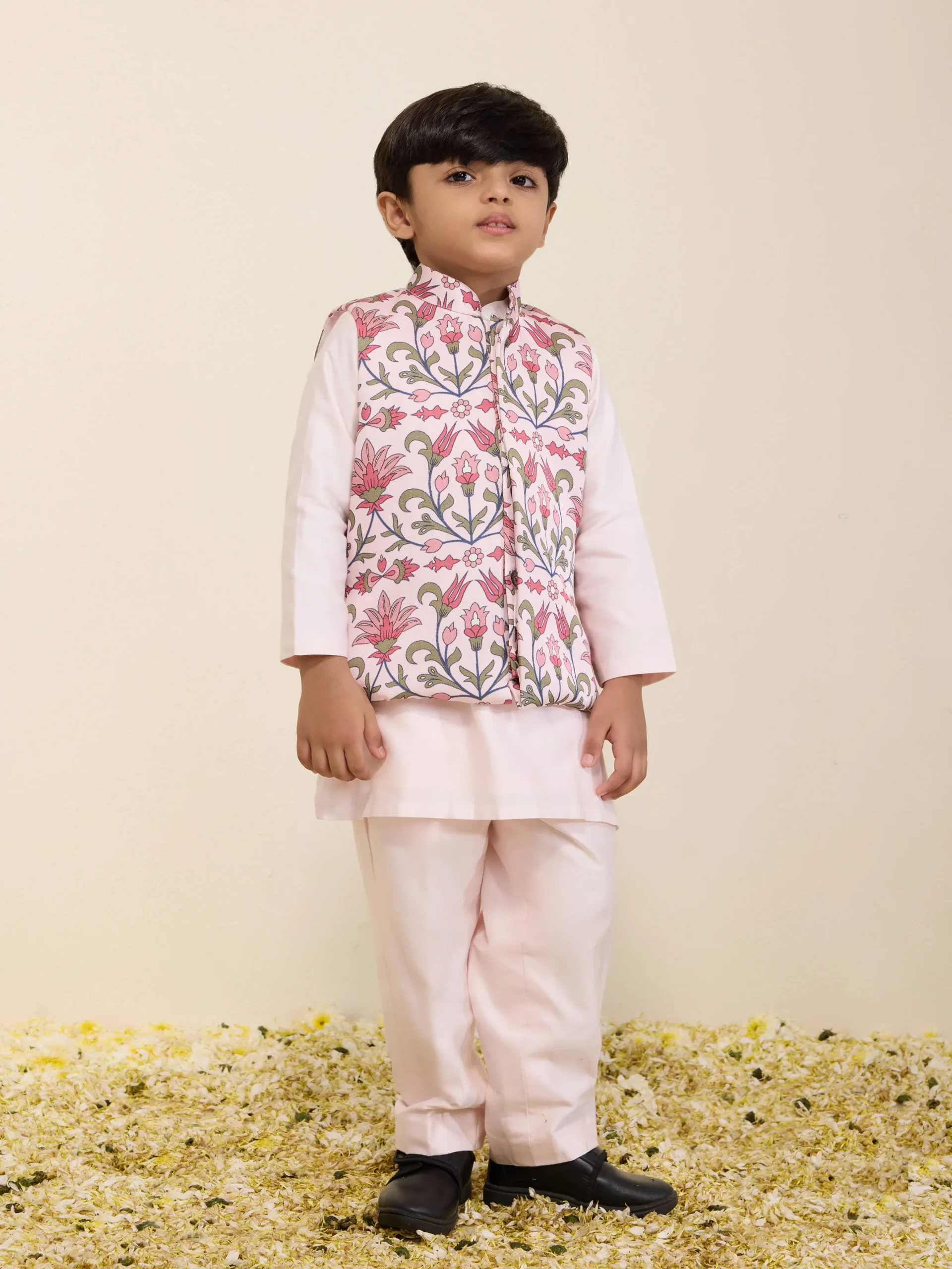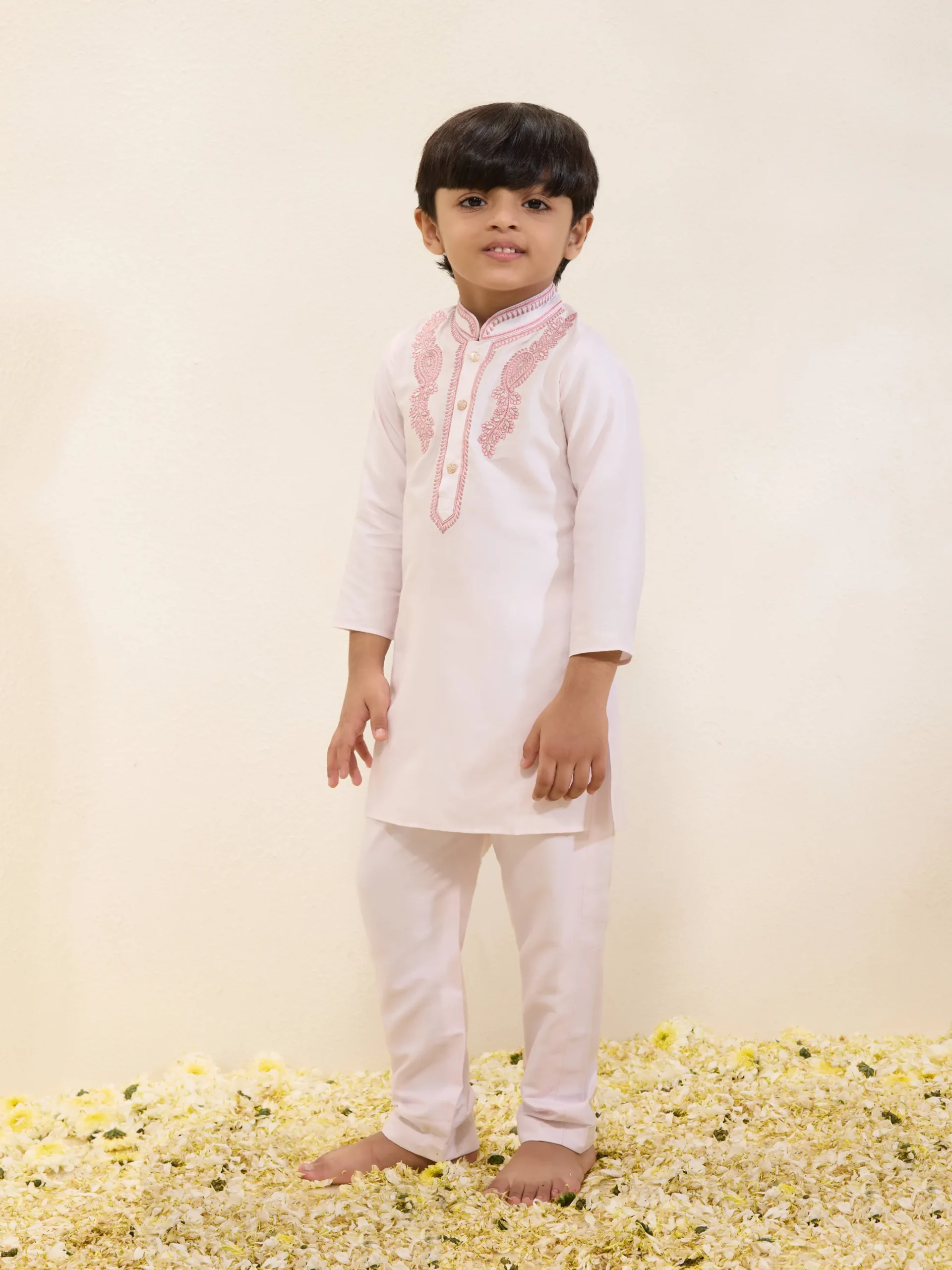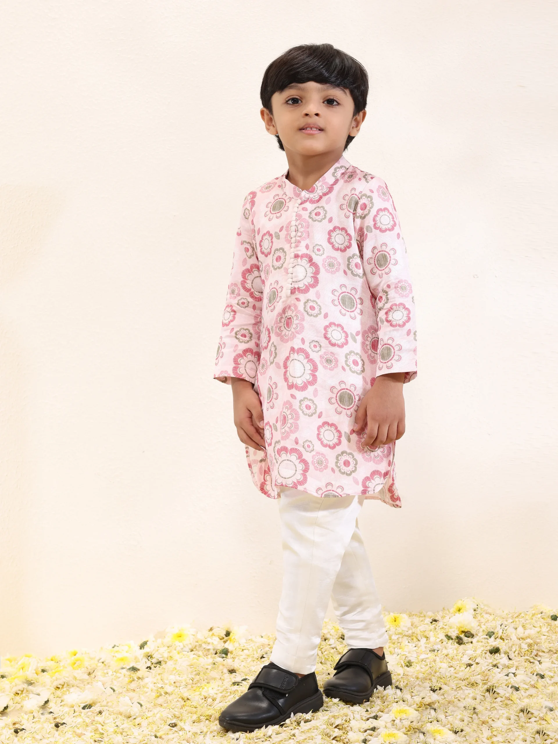 Floral Print Kurta Set with Potli Button Detail and Narrow Pants
