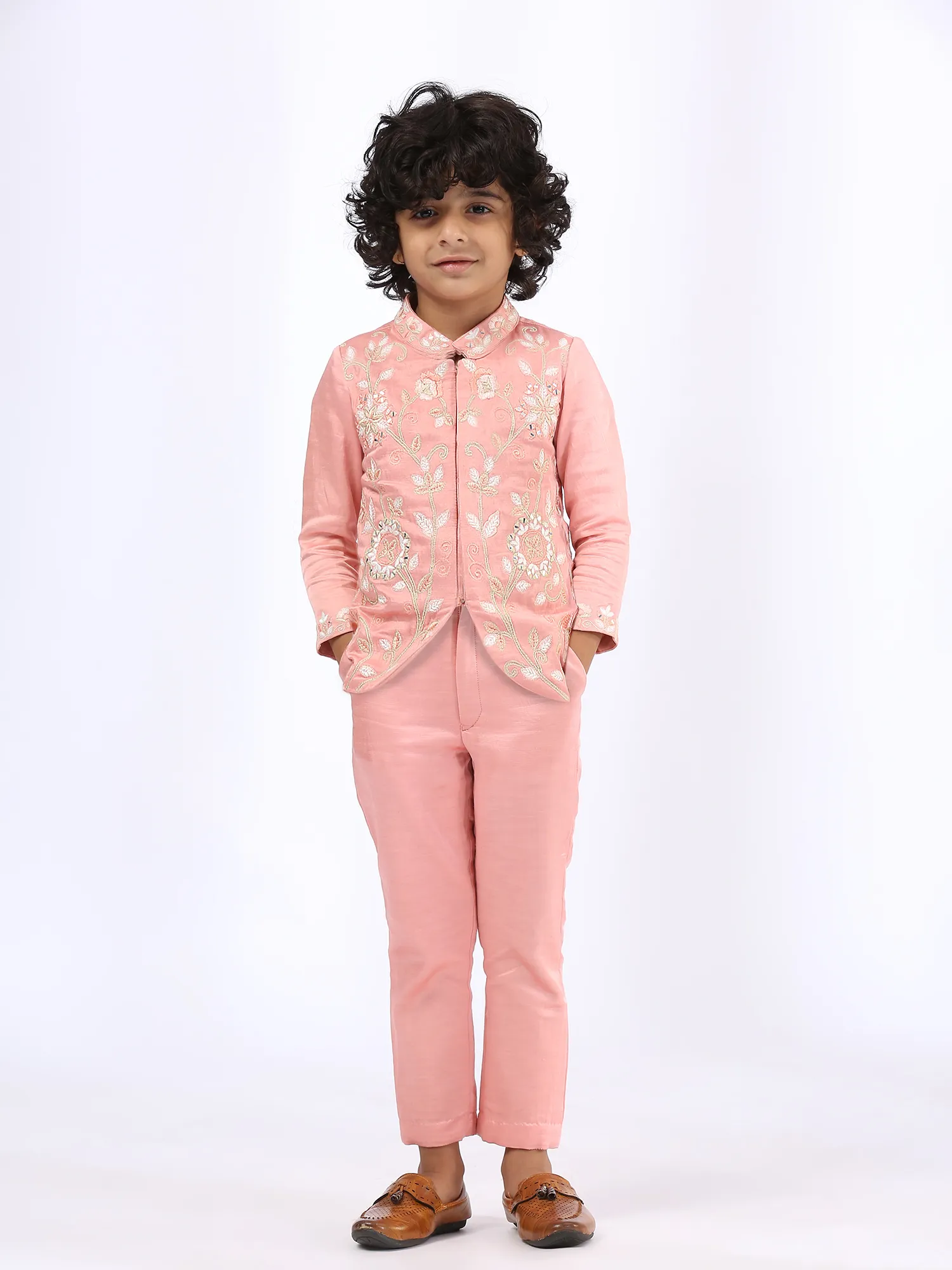 Peach Threadwork Embroidered Jacket Set with Narrow Pants