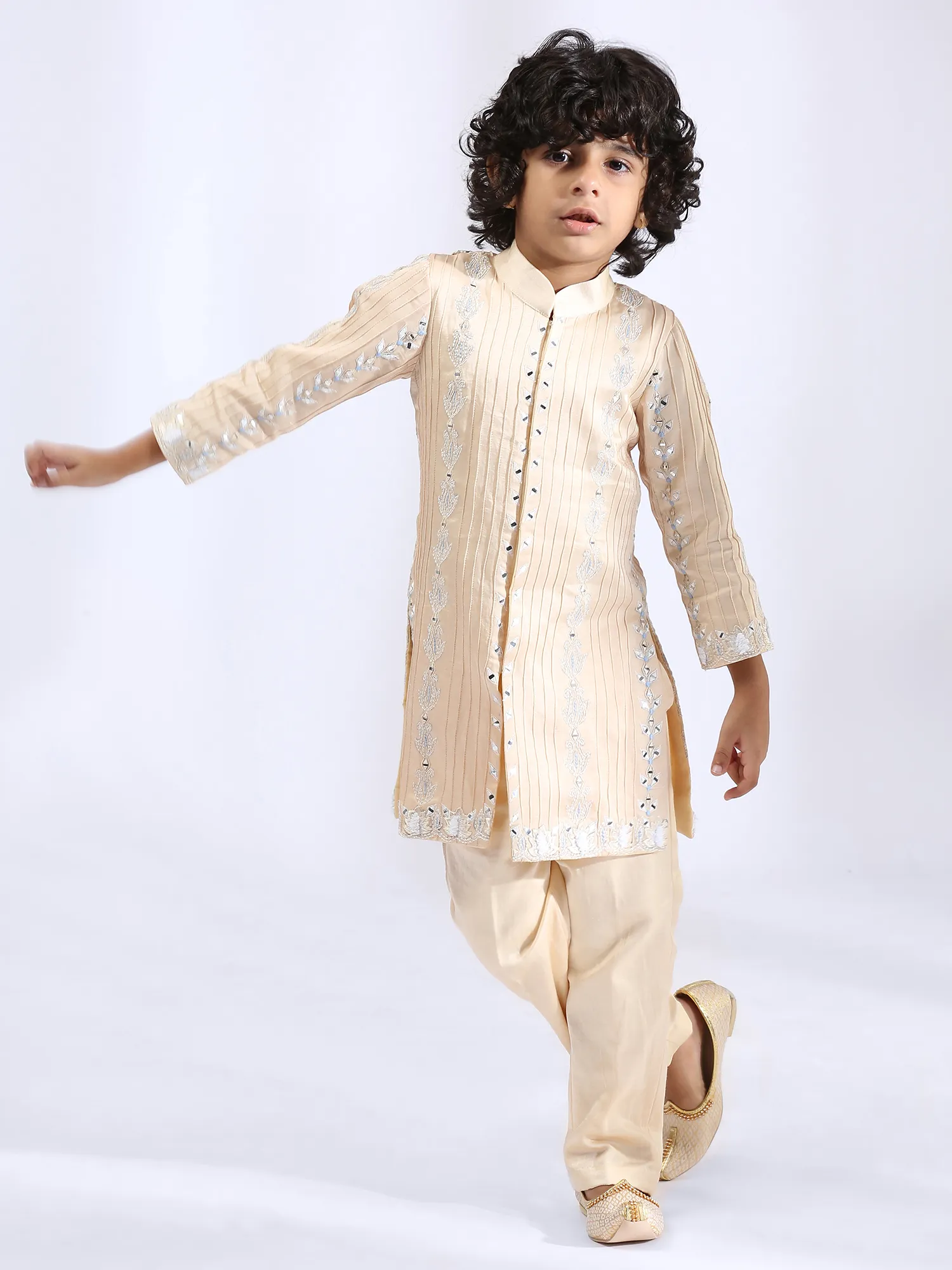 Nude Thread Embroidered Sherwani Set with Narrow Pants
