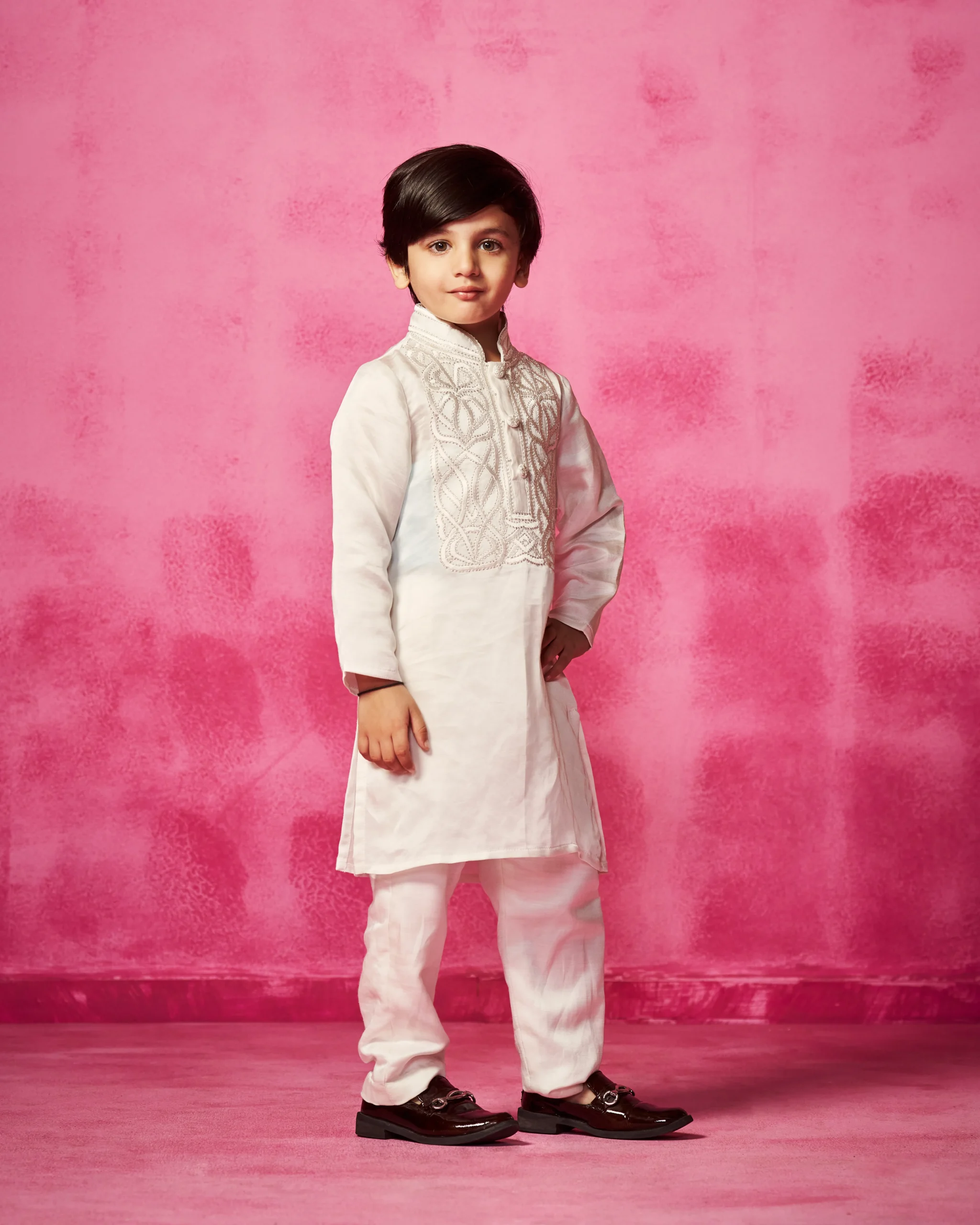 Ivory Cutwork Thread Embroidered Kurta Set with Matching Pants