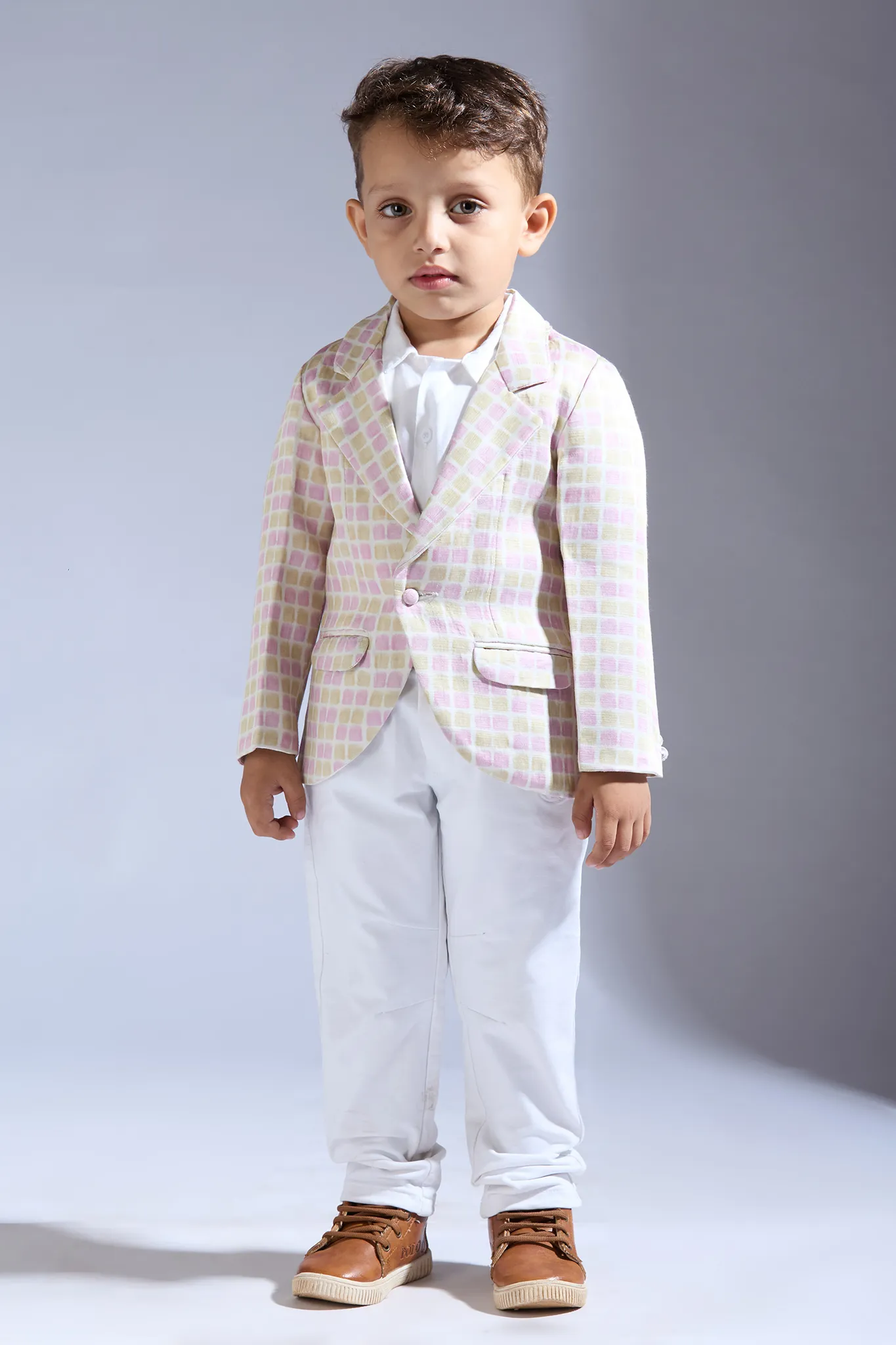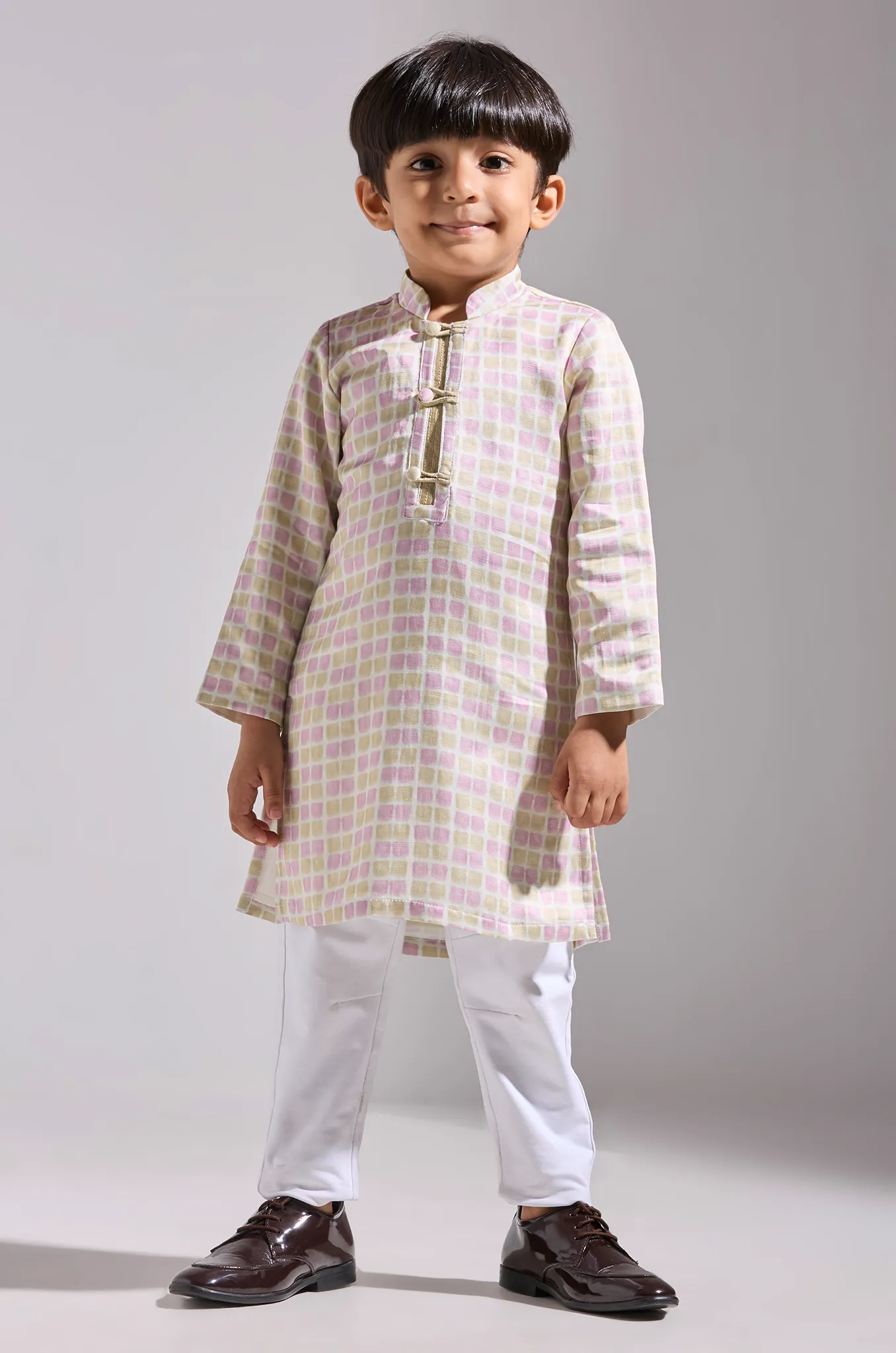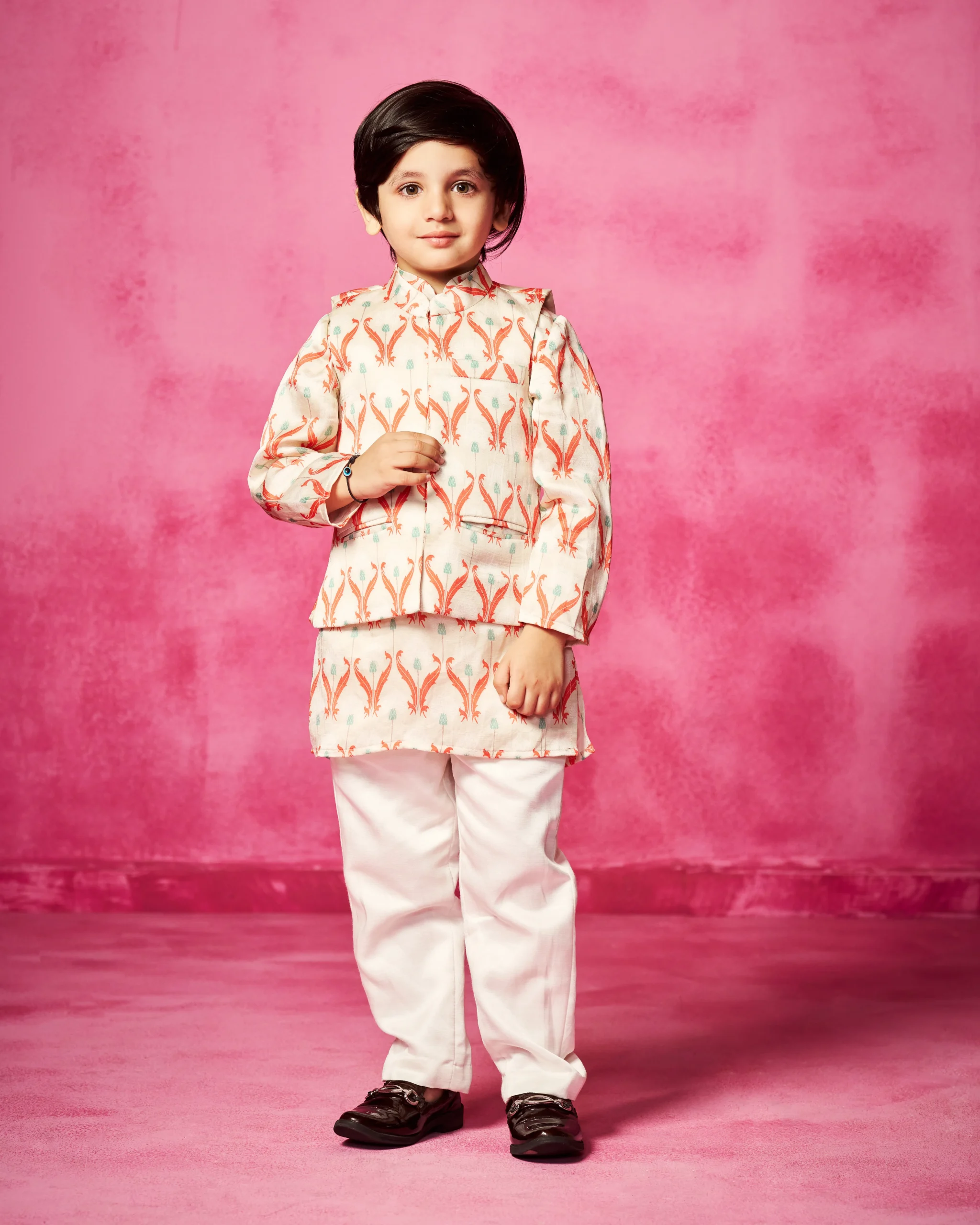 Printed Kurta Set with Matching Waistcoat and Ivory Narrow Pants