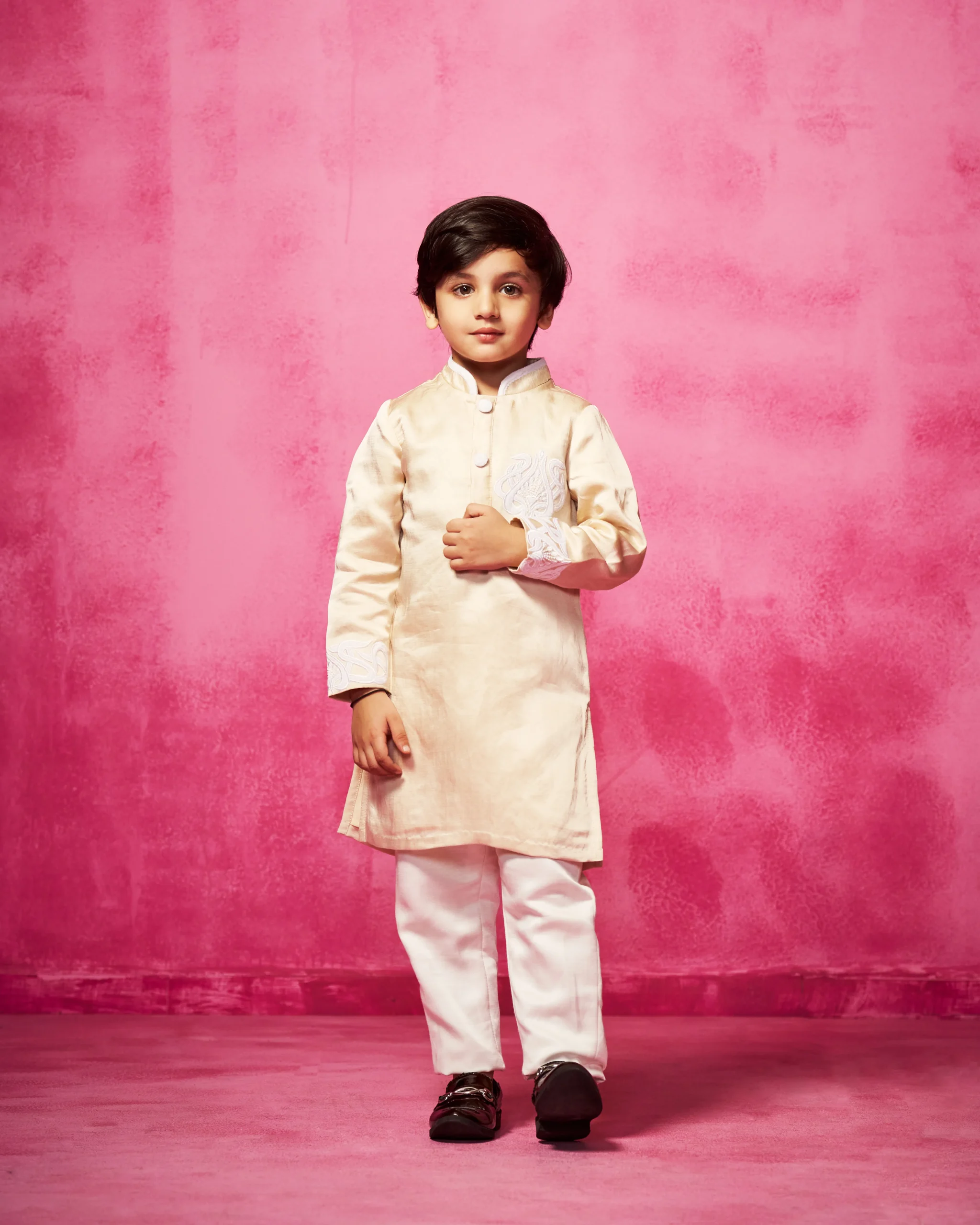 Ivory Contrast Stitch Detail Kurta Set with Matching Pants