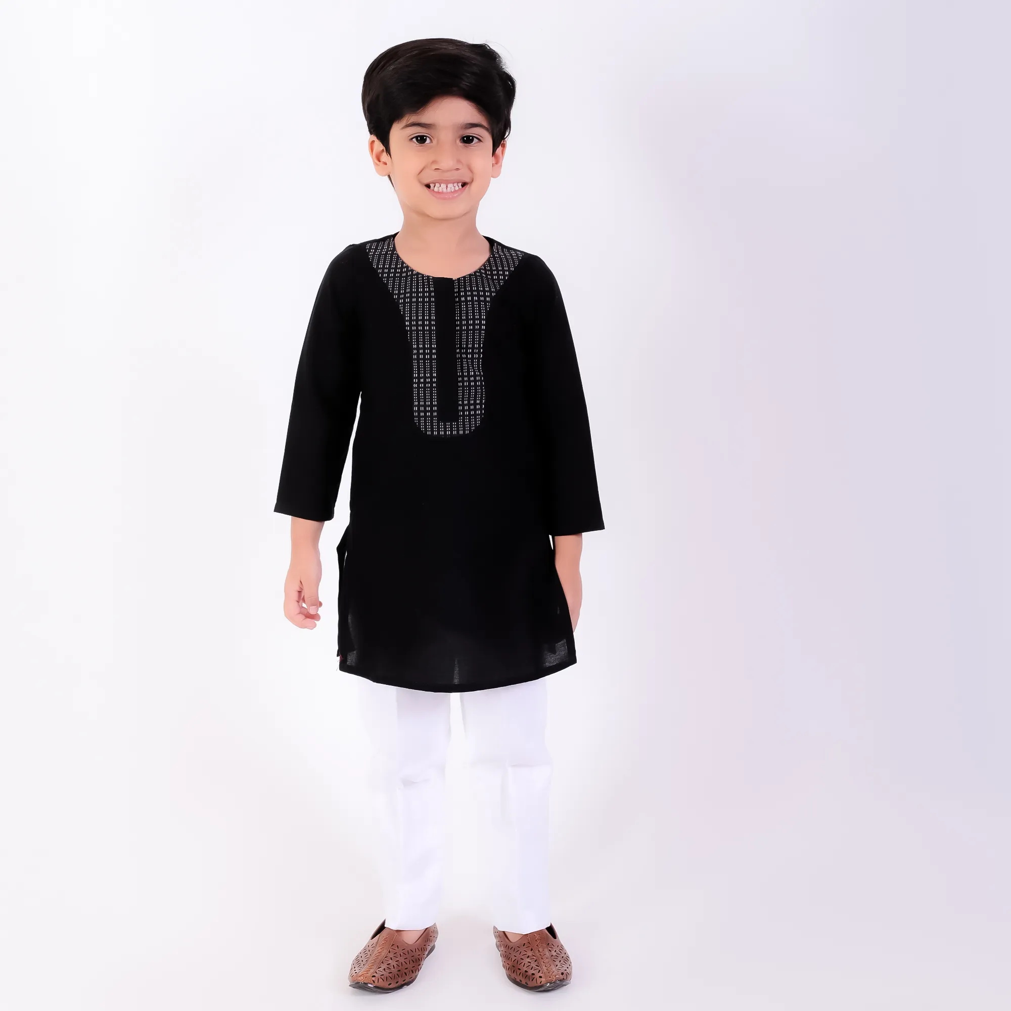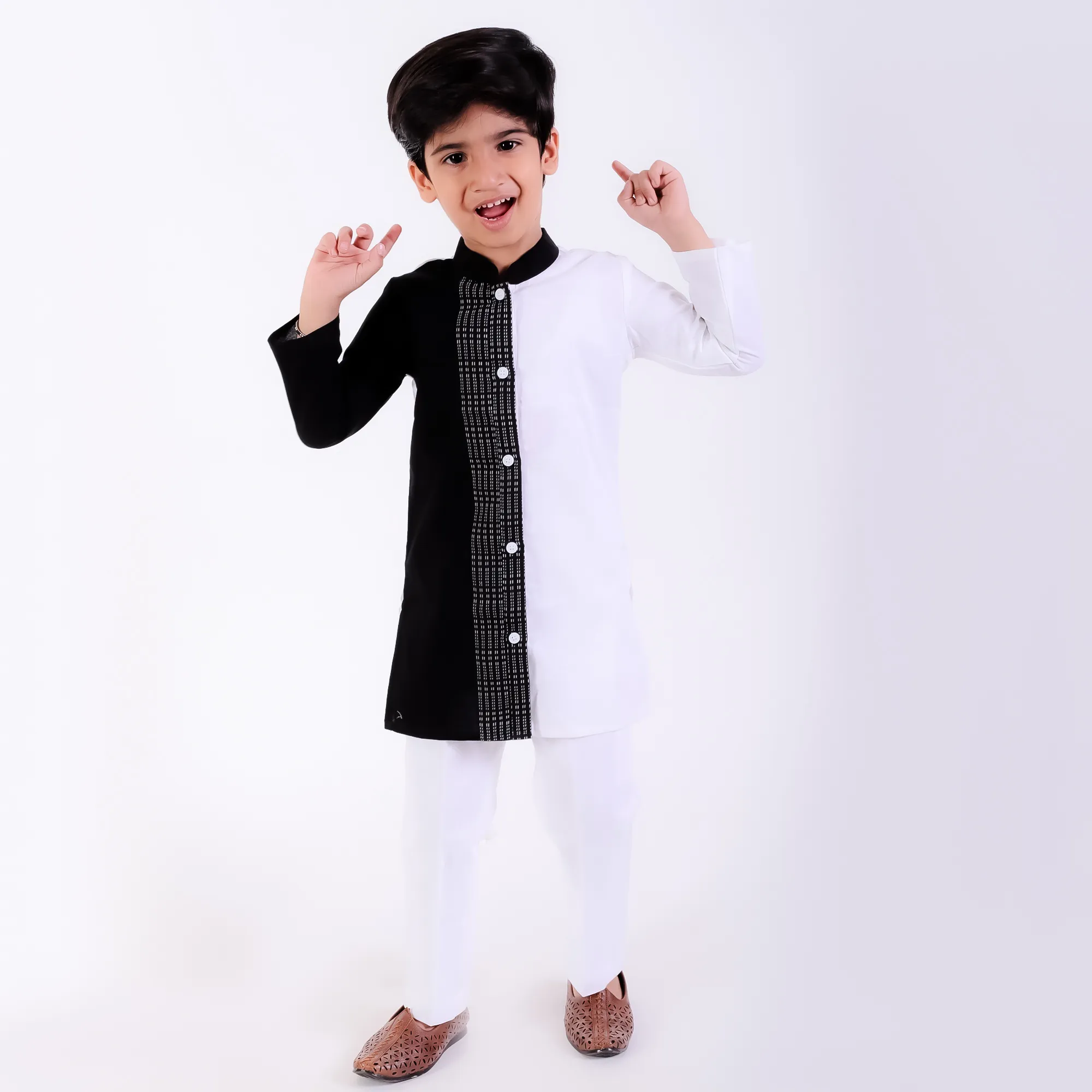Half Black and Half Ivory Kurta Set with Matching Pants