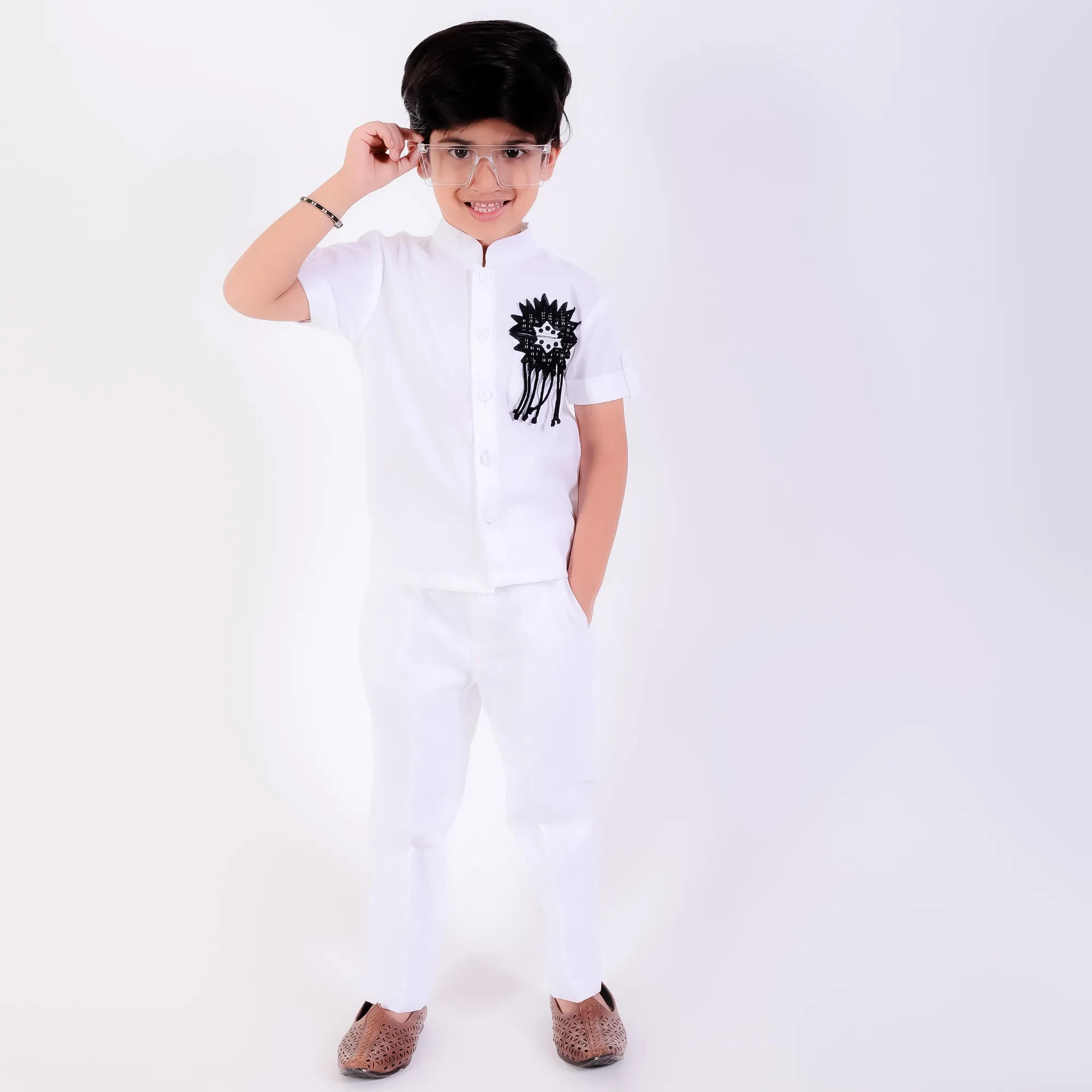 Ivory Threadwork Embroidered Kurta Set with Matching Narrow Pants