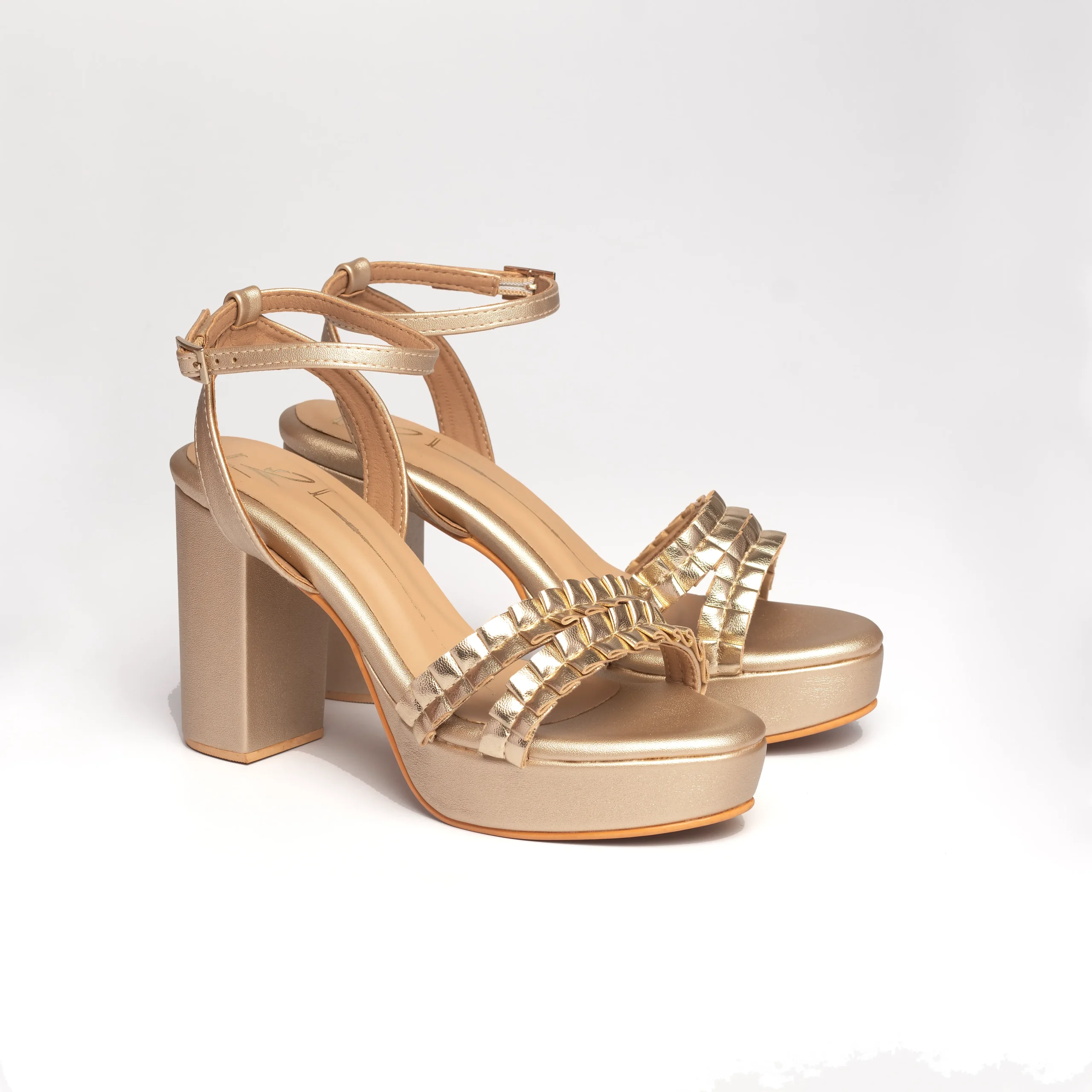 Gold Platform Ankle-Strap Block Heels