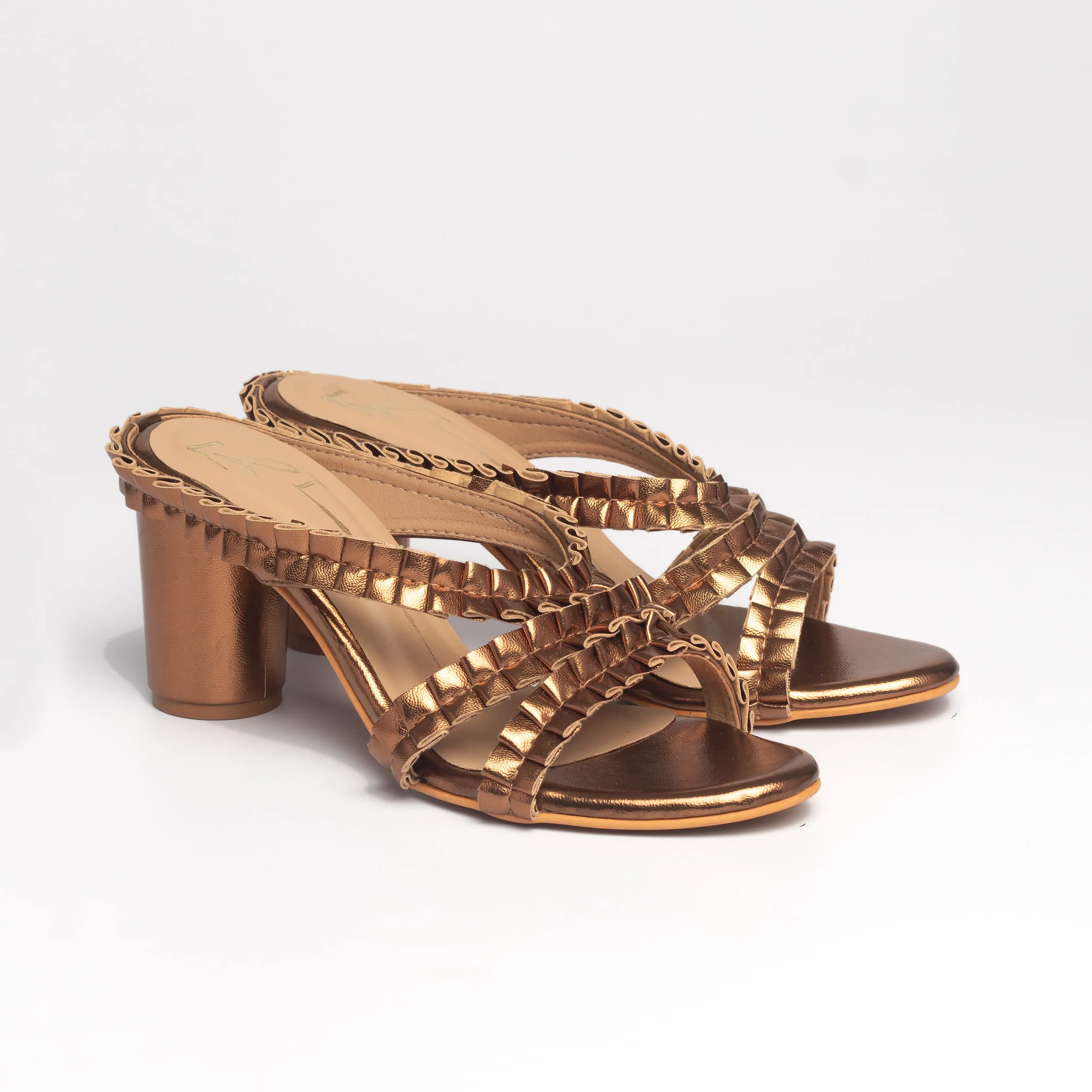 Antique Gold Textured Cross-Strap Block Heels