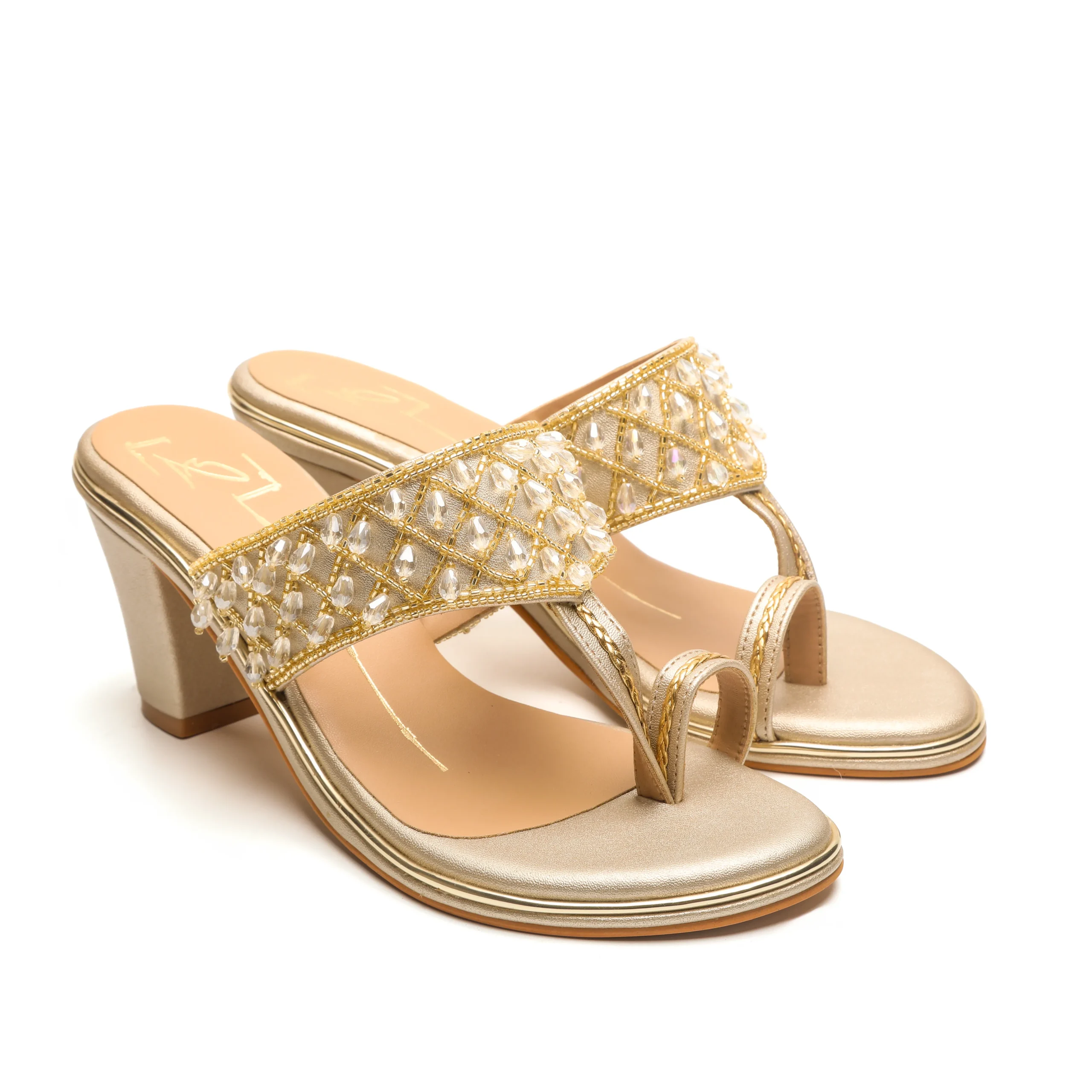 Antique Gold Crystal Embellished Block Heels